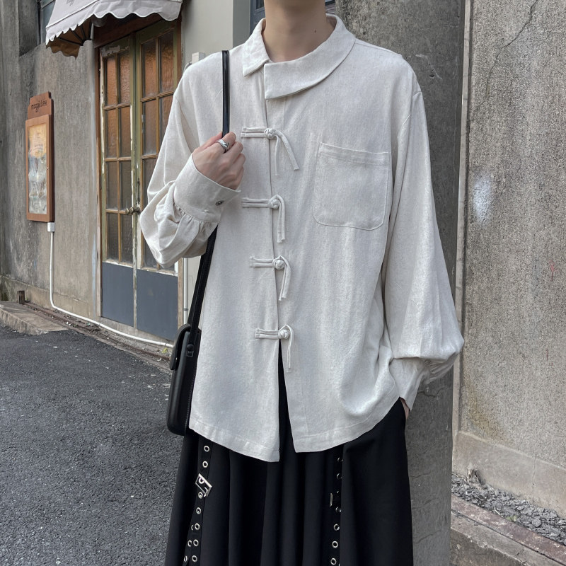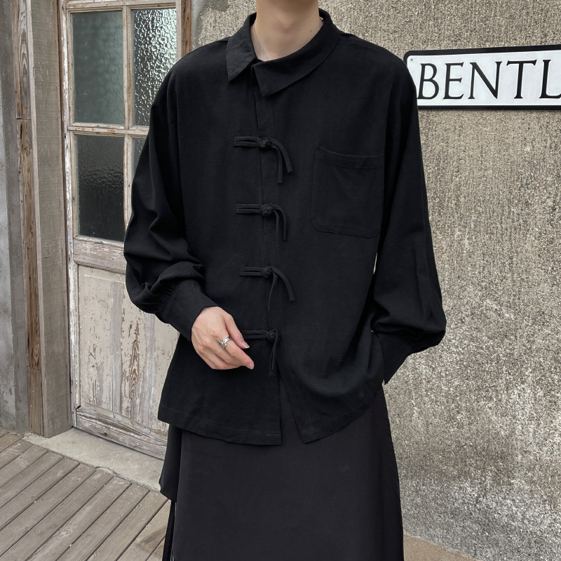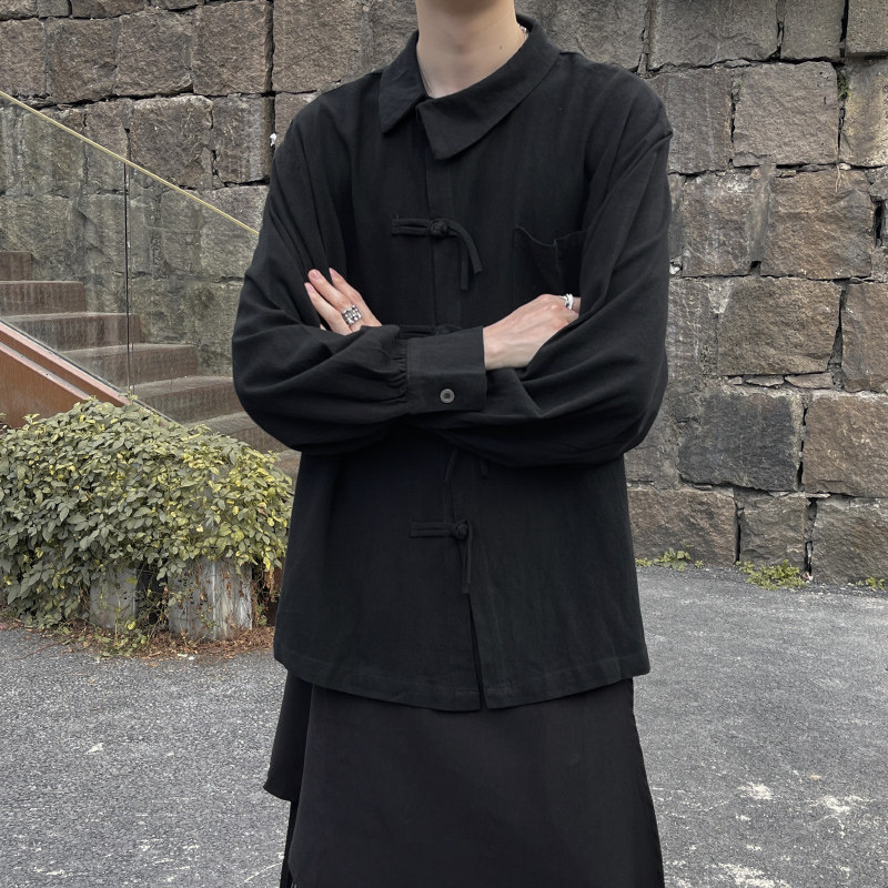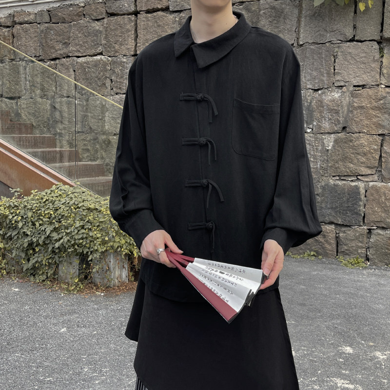📚 新中式国风男装盘扣衬衫设计感小众大码衬衣日系复古山本风外套男