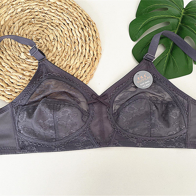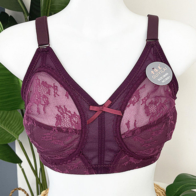 📚 大胸显小全罩杯大码文胸超薄款性感蕾丝无钢圈聚拢透气透明内衣女