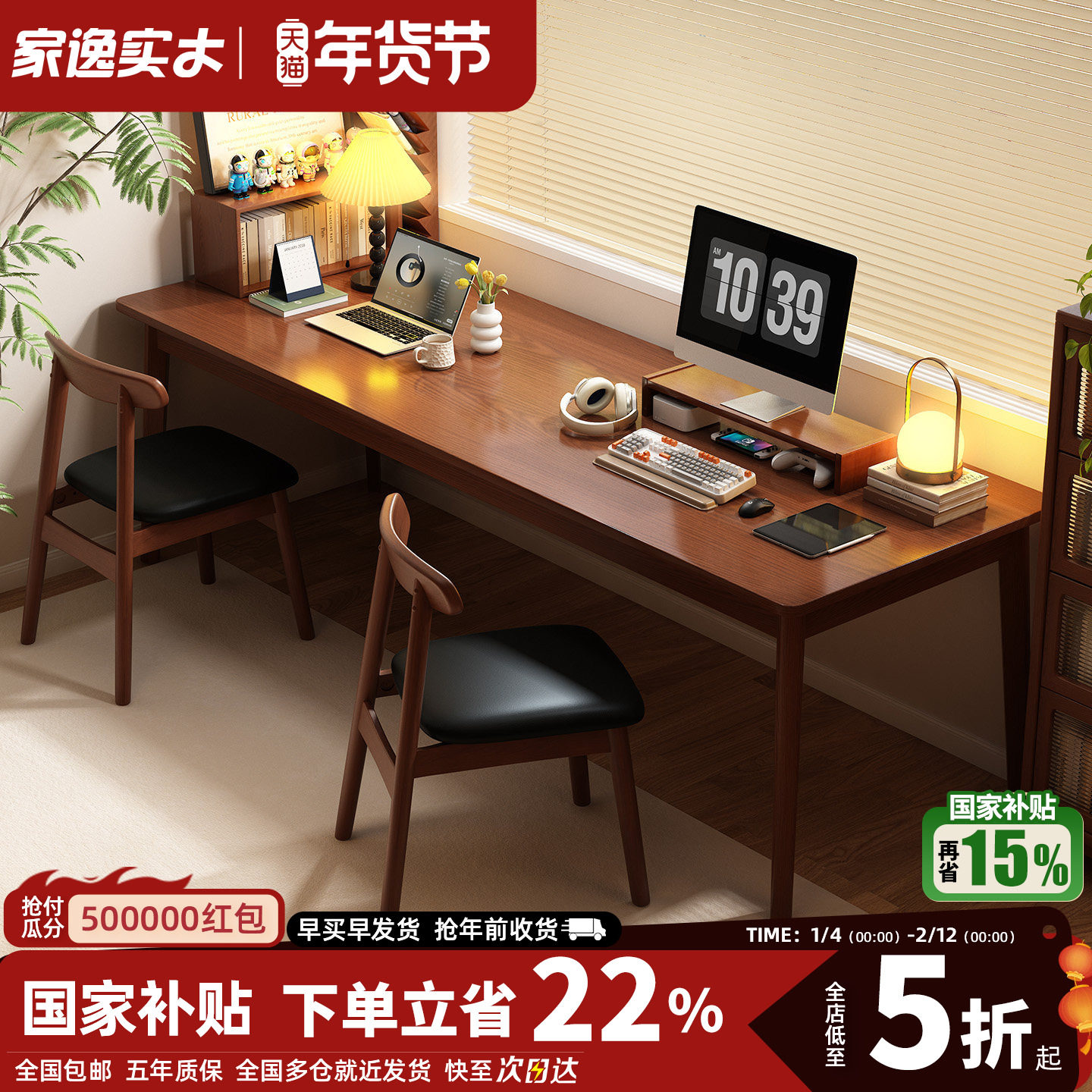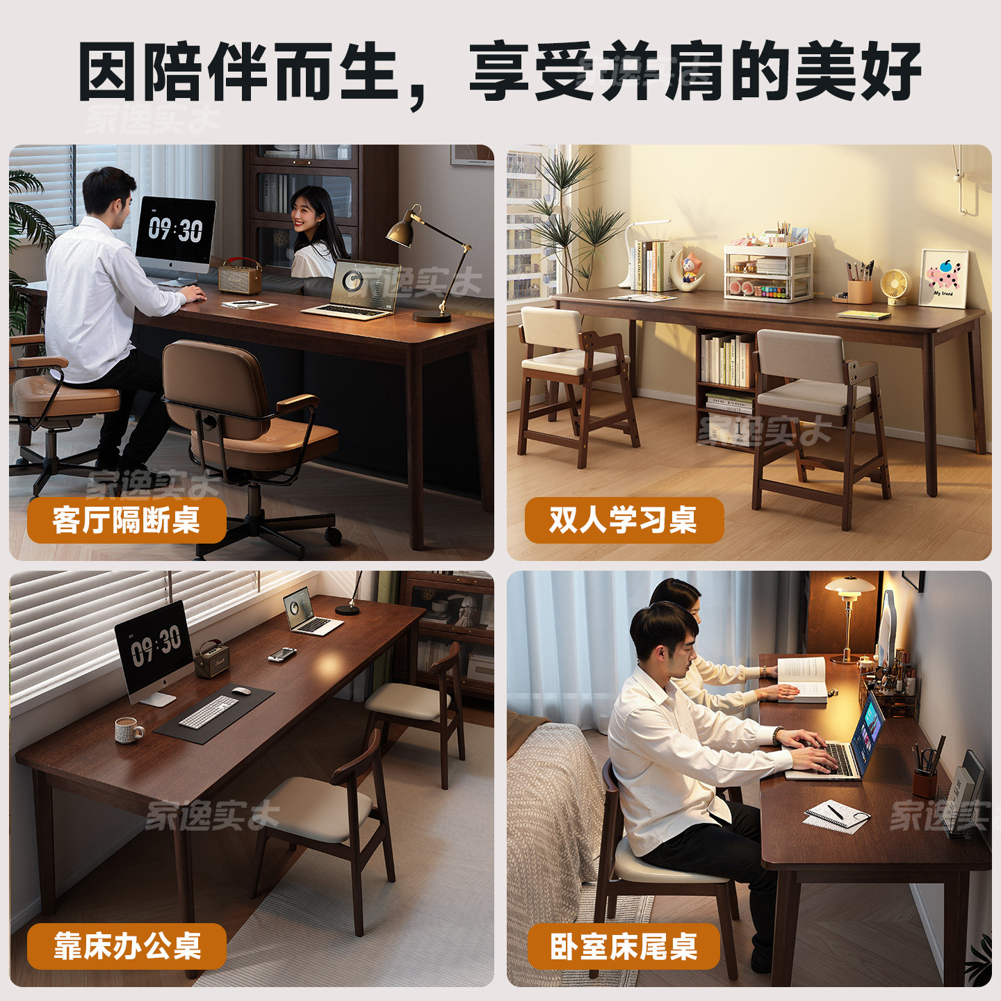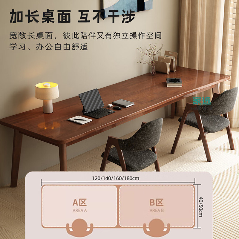 📚 家逸靠墙长条桌子工作台实木双人窄书桌客厅电脑桌家用学习写字桌