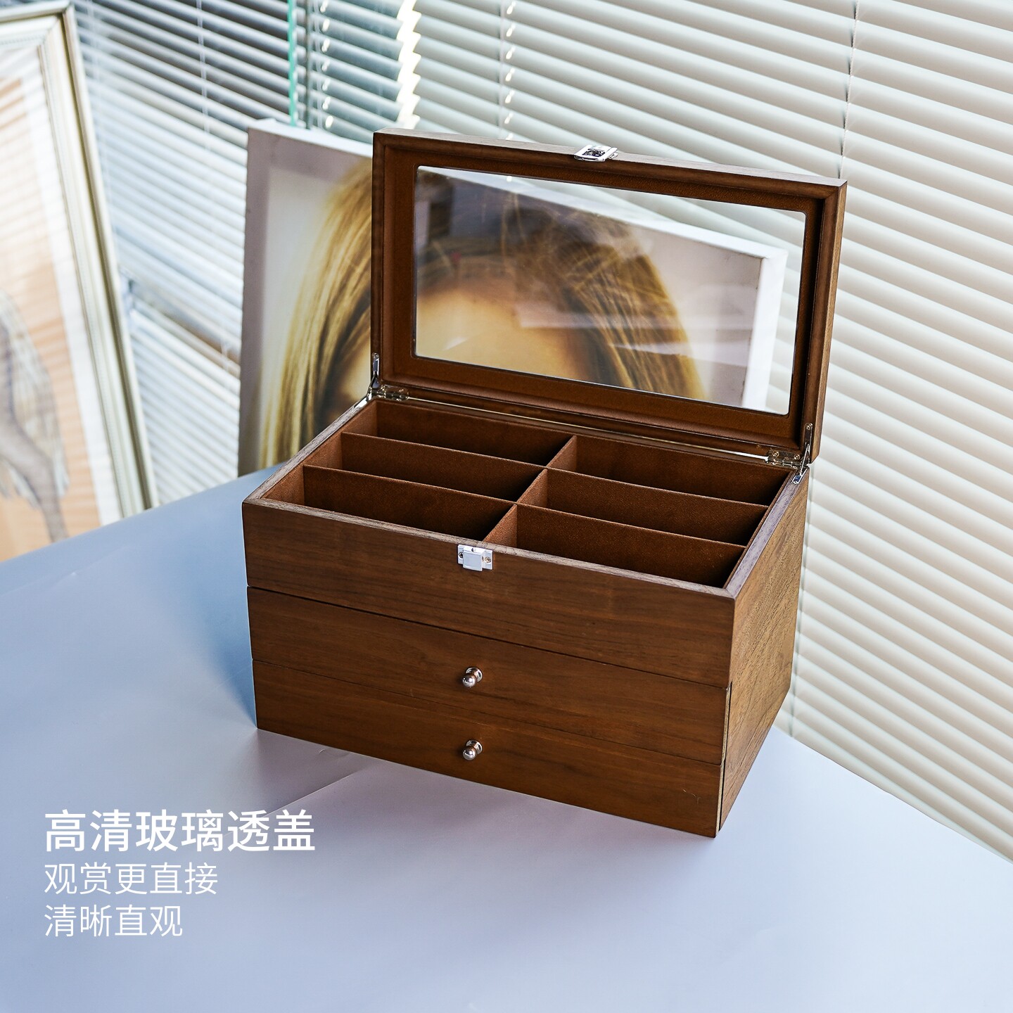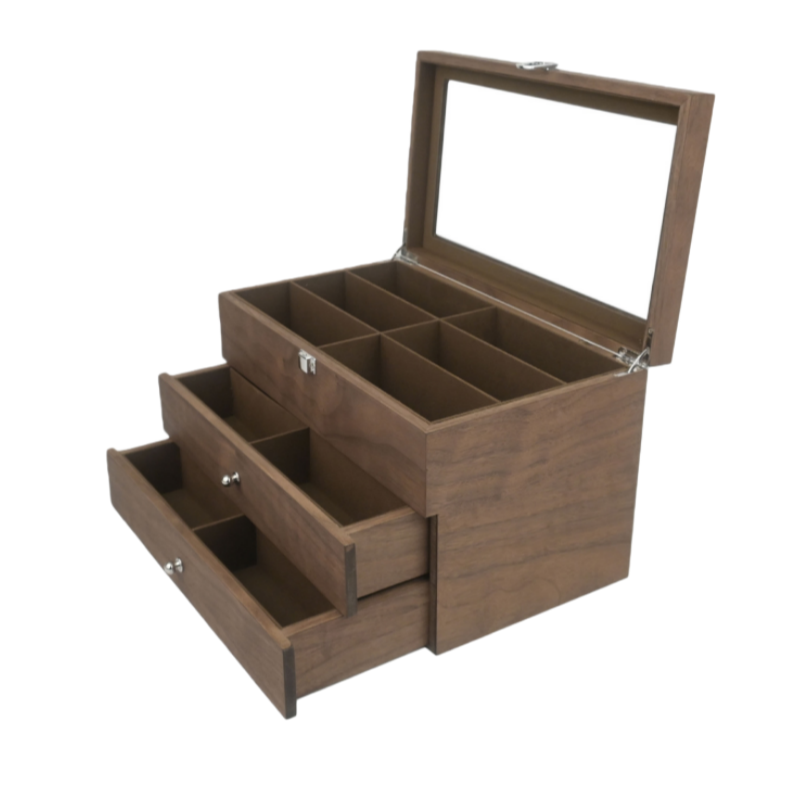 📚 烟斗收纳箱黑胡桃木纹18位三层大容量弯式烟杆珍藏陈列盒防尘带盖