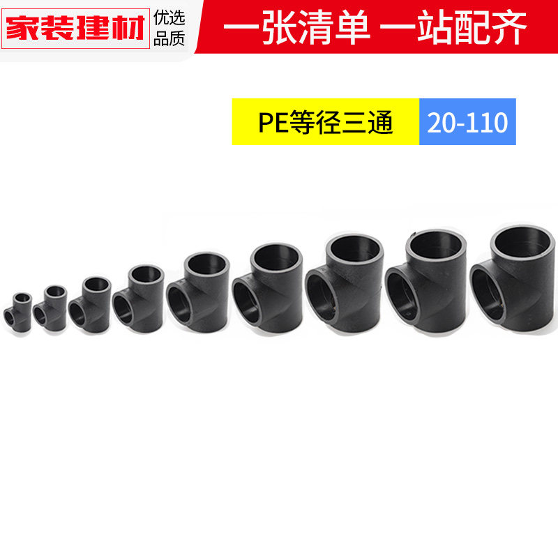 📚 pe三通等径接头热熔管件20 25 32 50 63 4分黑色自来水管配件