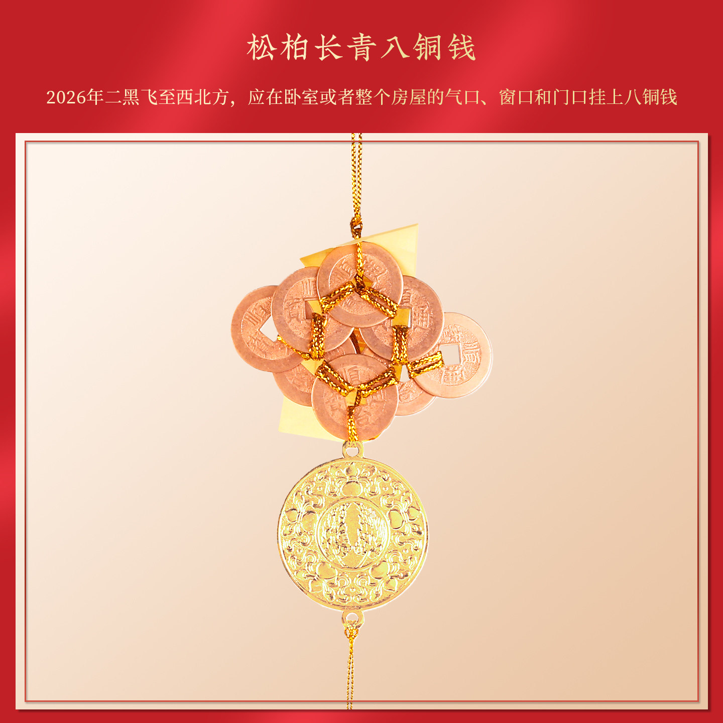 🎁在细节上更是做到了极致。每一枚铜钱都精心打磨,形状各异,寓意丰富。尤其是那松柏常青挂件的设计,不仅美观,更寓意着常青、长寿、健康的美好愿景。
