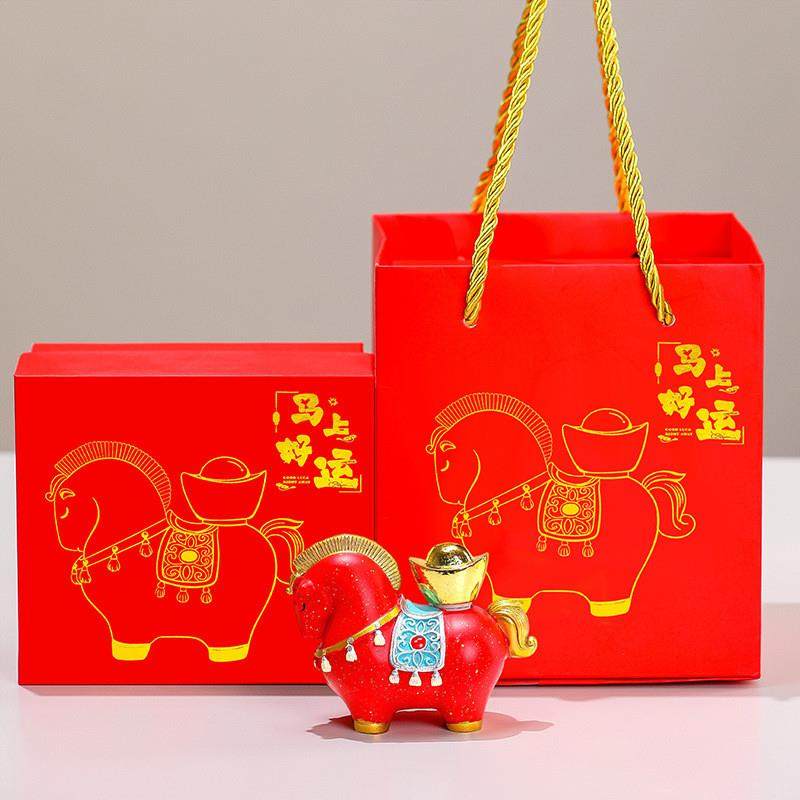 📚 创意国潮马福袋元宝可旋转家居摆件办公室桌面装饰品公司年会礼物