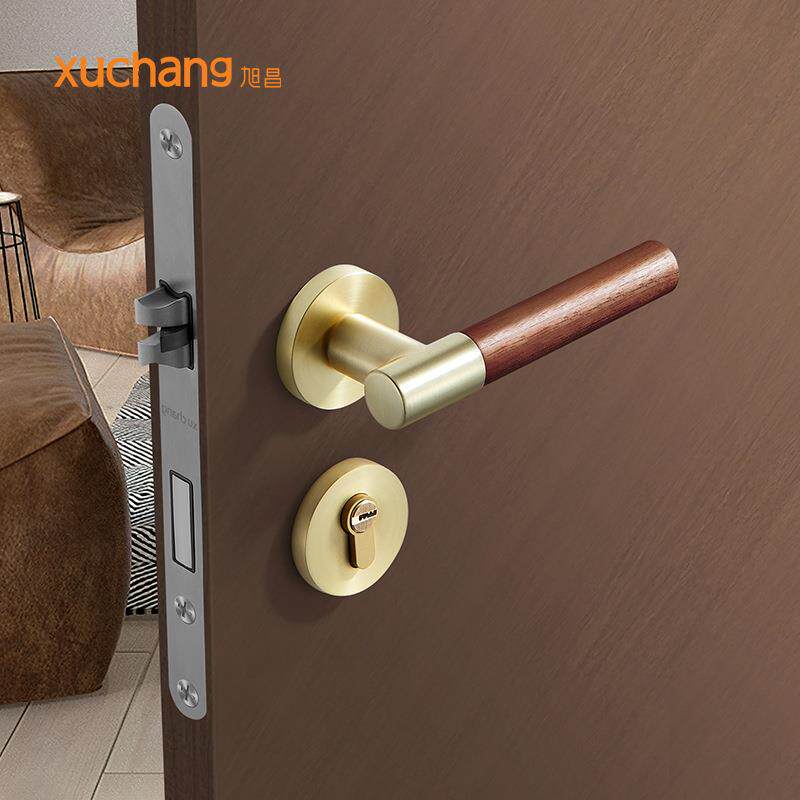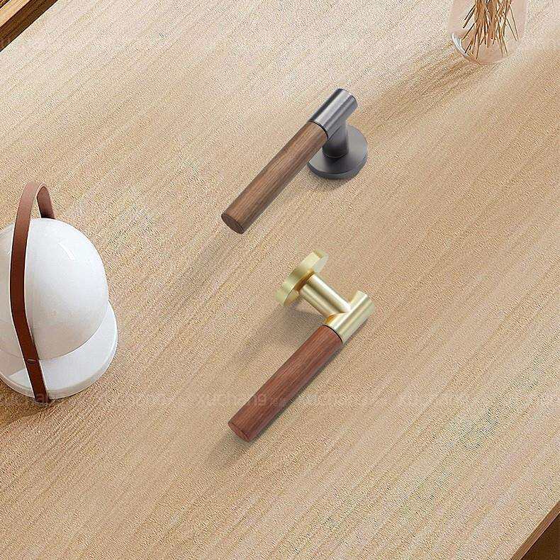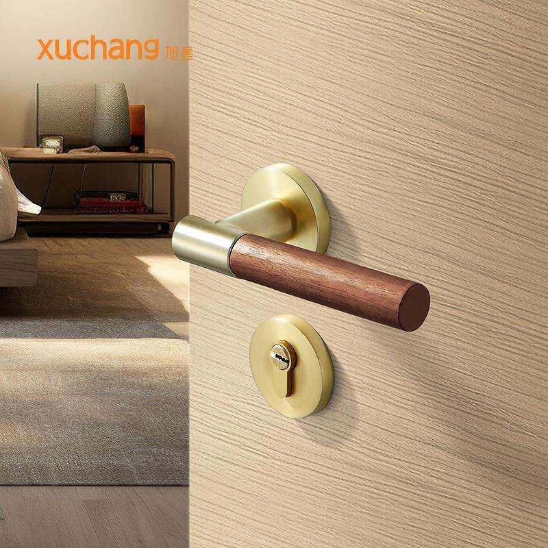 📚 卧室室内房门锁执手分体锁胡桃木原木简约风门把手锌合金静音锁具