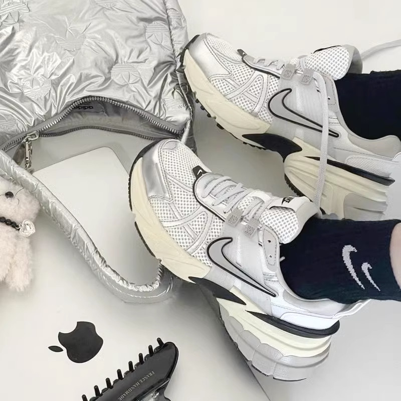 📚 耐克女鞋V2K白银厚底老爹鞋网面透气休闲鞋机能跑步鞋FD0736-100