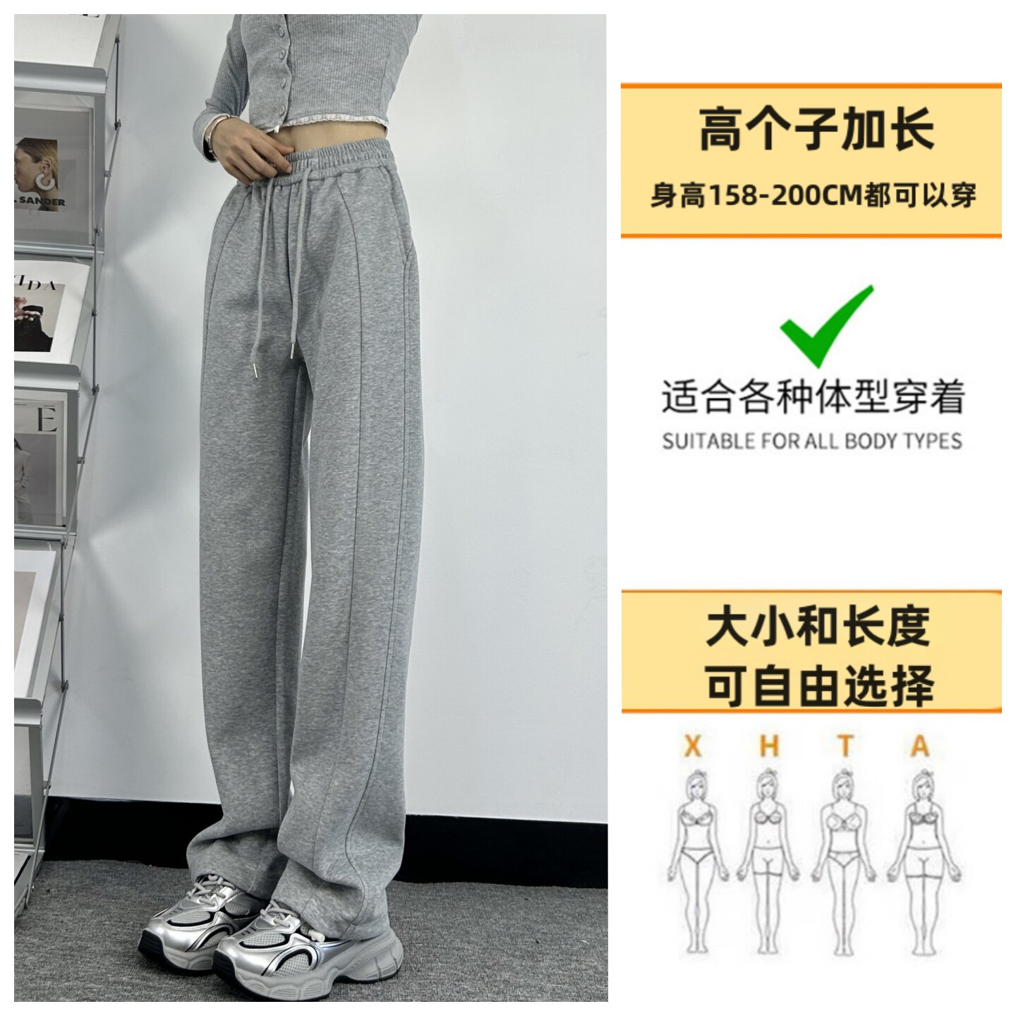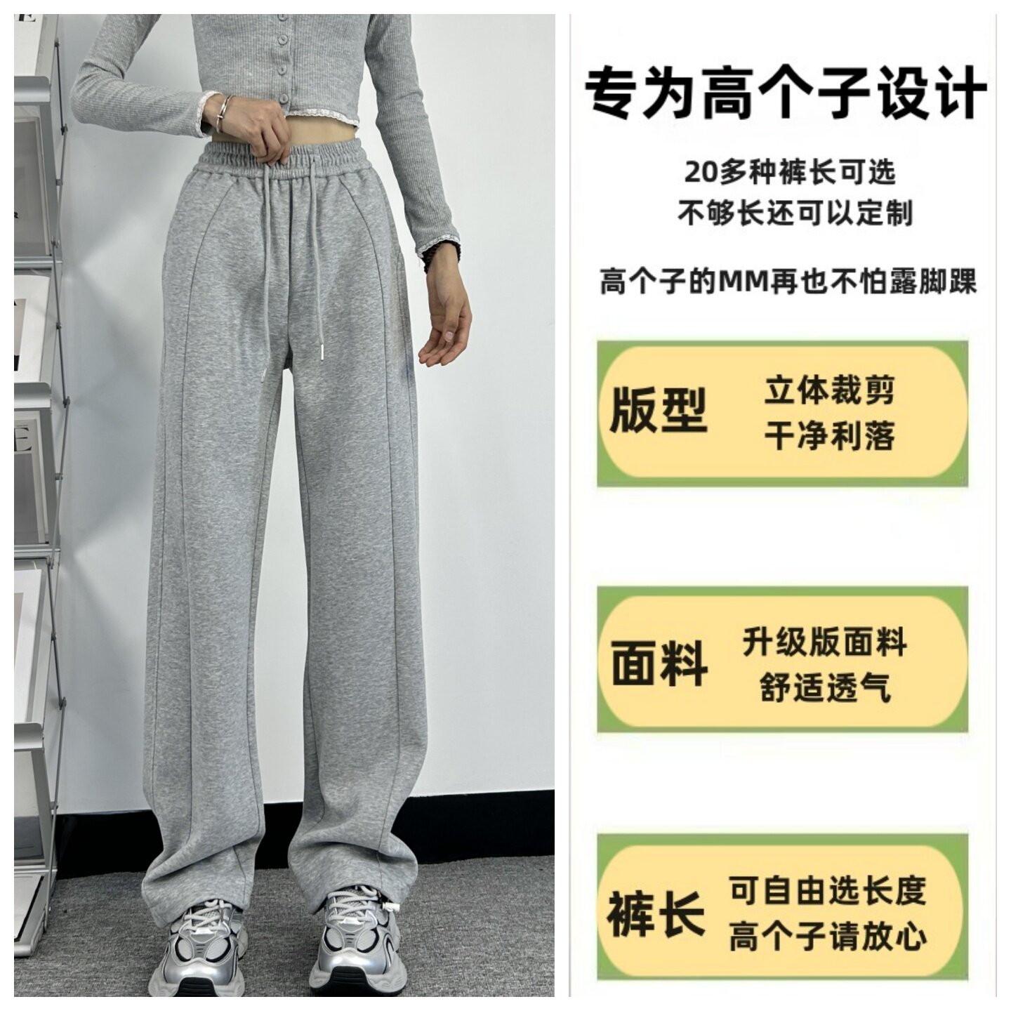 📚 高个子175超长美式运动裤女春秋加长卫裤高腰宽松直筒窄版阔腿裤