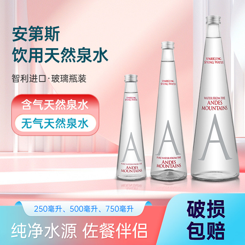 📚 智利进口ANDS安第斯饮用天然矿泉水高端气泡水玻璃瓶250ml/750ml