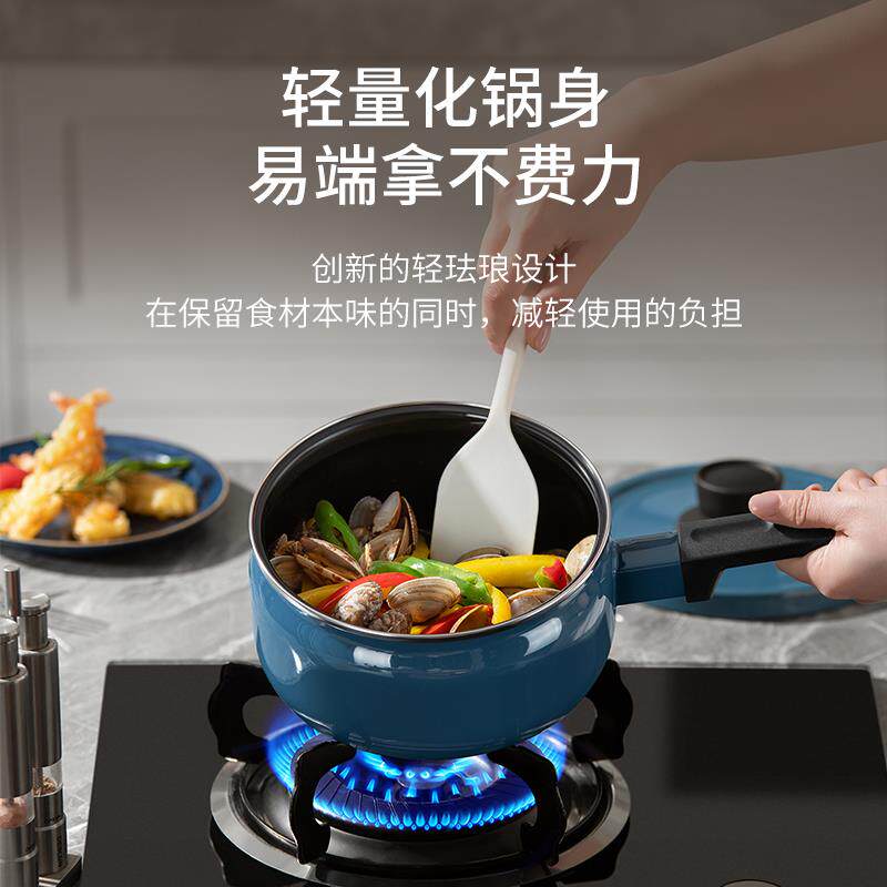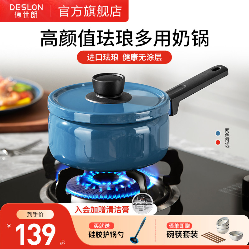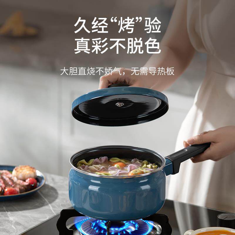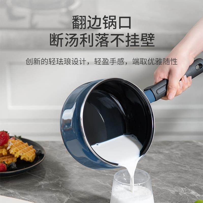 📚 【新品】德世朗珐琅小奶锅宝宝辅食锅婴儿煎煮一体锅家用汤泡面锅