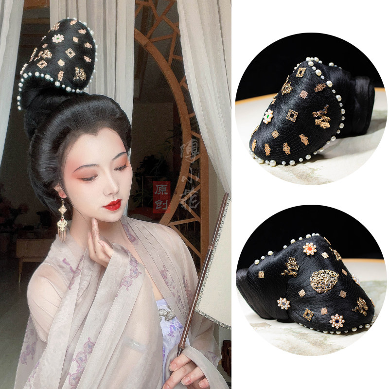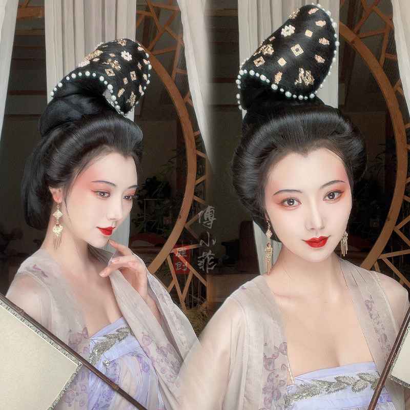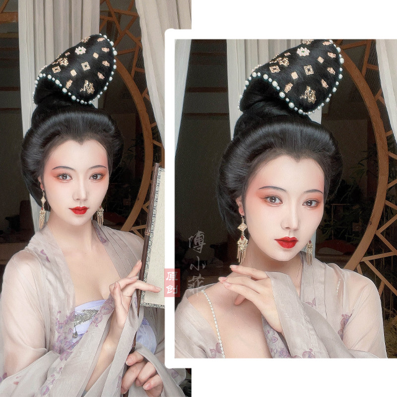 📚 傅小菲 翻刀髻软发丝唐风花片发包 汉服造型诃子裙半翻刀