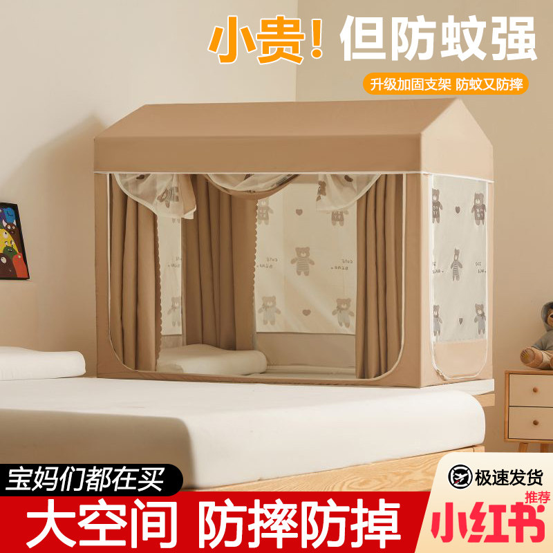 📚 2025新款婴儿拼接床蚊帐家用卧室全底儿童防摔蒙古包遮光床上帐篷