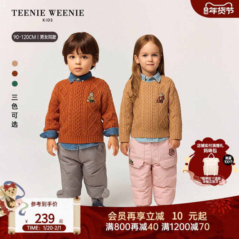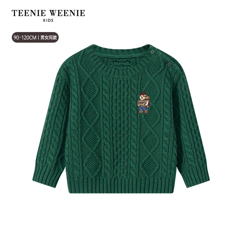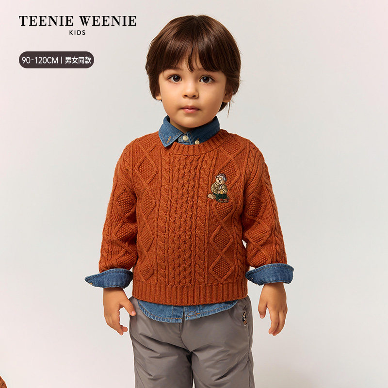 📚 TeenieWeenie Kids小熊童装25年秋冬男女宝简约百搭绞花针织毛衣