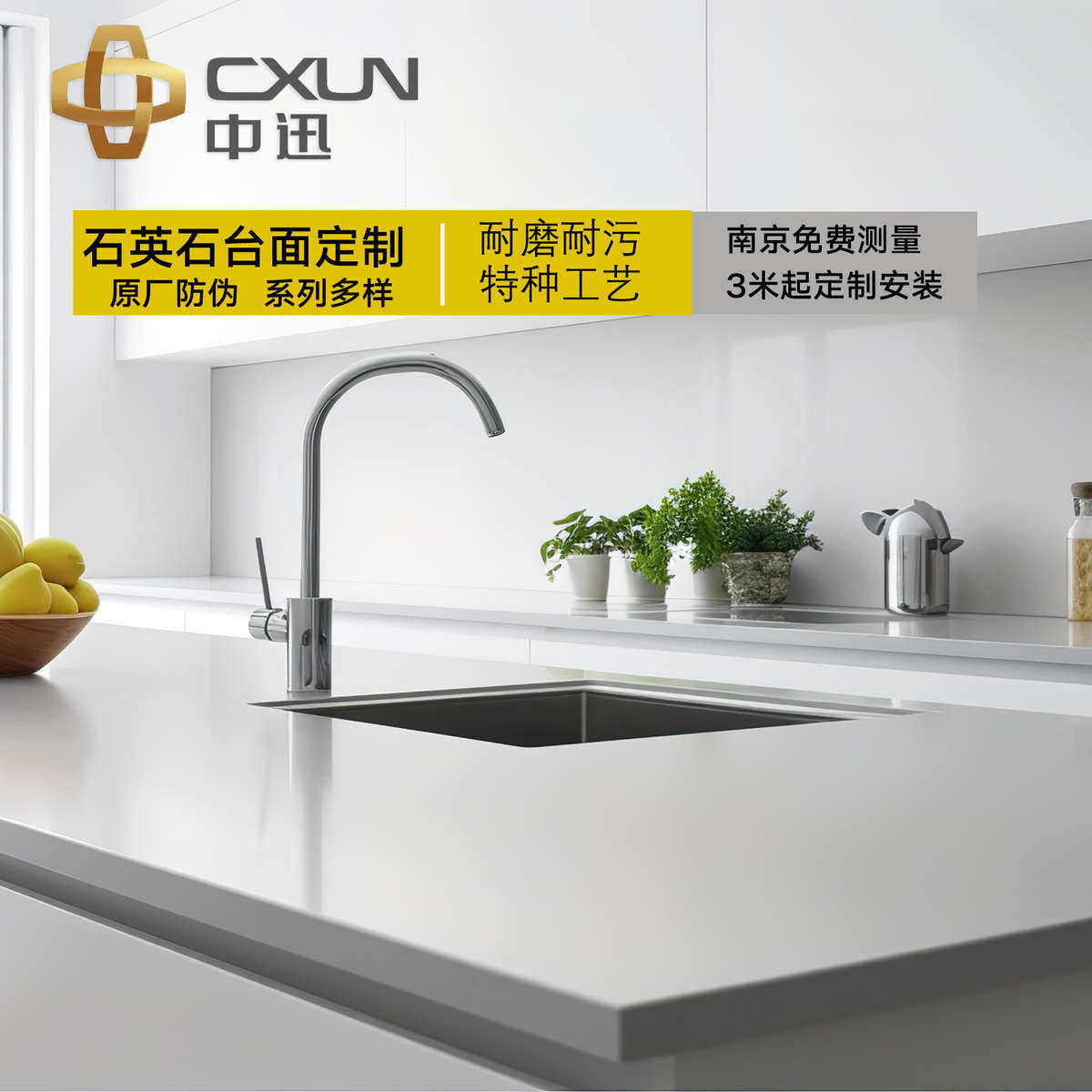 📚 中迅石英石赫本耐磨耐污橱柜台面定制背景墙吧台桌面飘窗15|20mm
