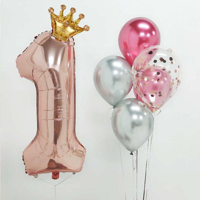 📚 玫瑰金32寸数字气球生日儿童宝宝女孩皇冠场景布置装饰氛围拍照品