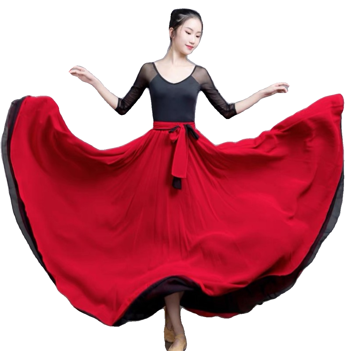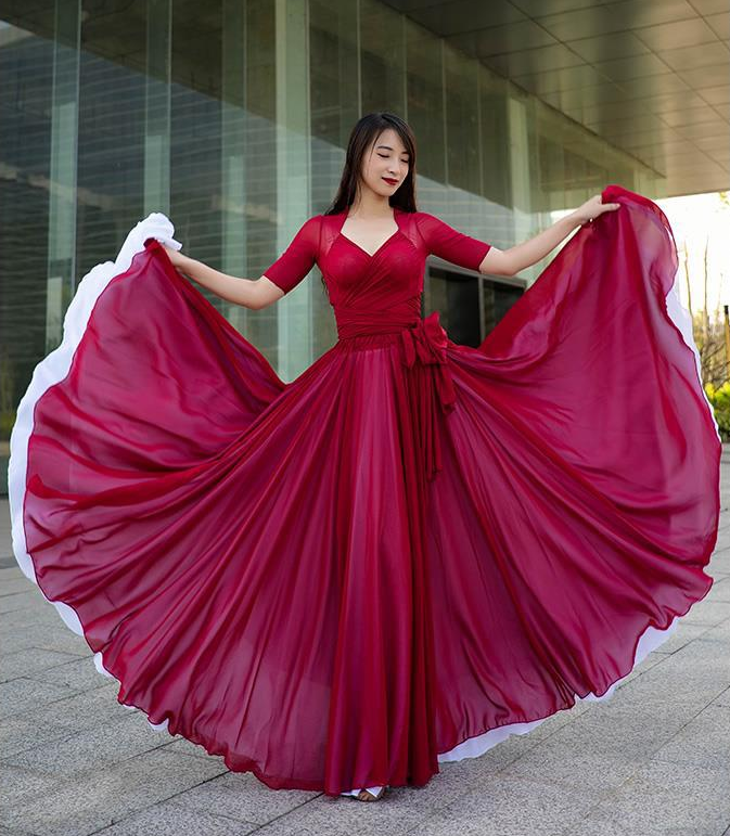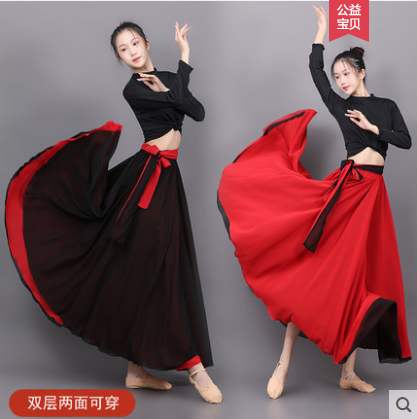 📚 720度千千阙歌古典舞黑白双层中国风雪纺大摆裙新款人世间舞蹈服