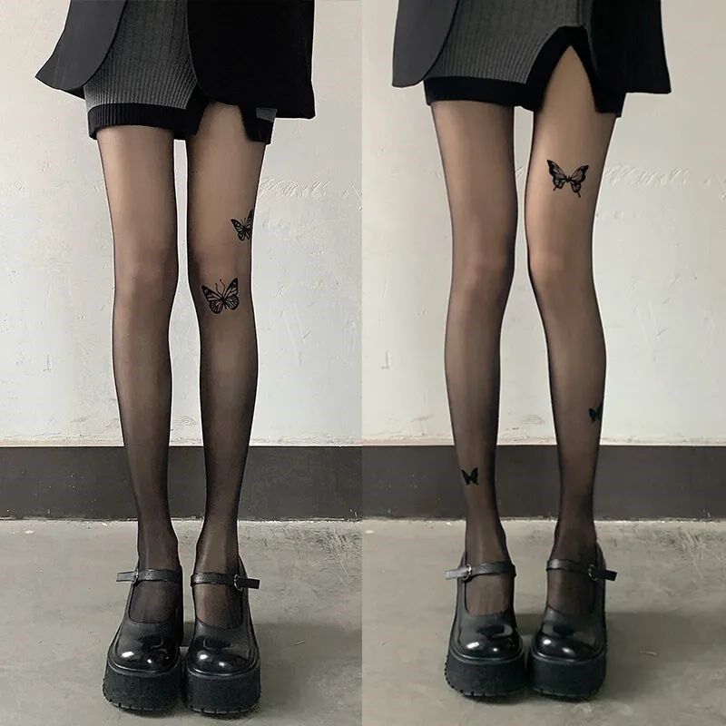 📚 New Sexy Women Tights Pantyhose Butterfly Print Thigh High S
