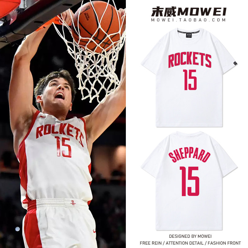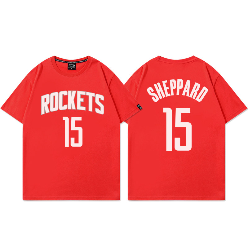 📚 火箭队15号球衣男谢泼德T恤美式休闲篮球训练服纯棉宽松短袖夏季