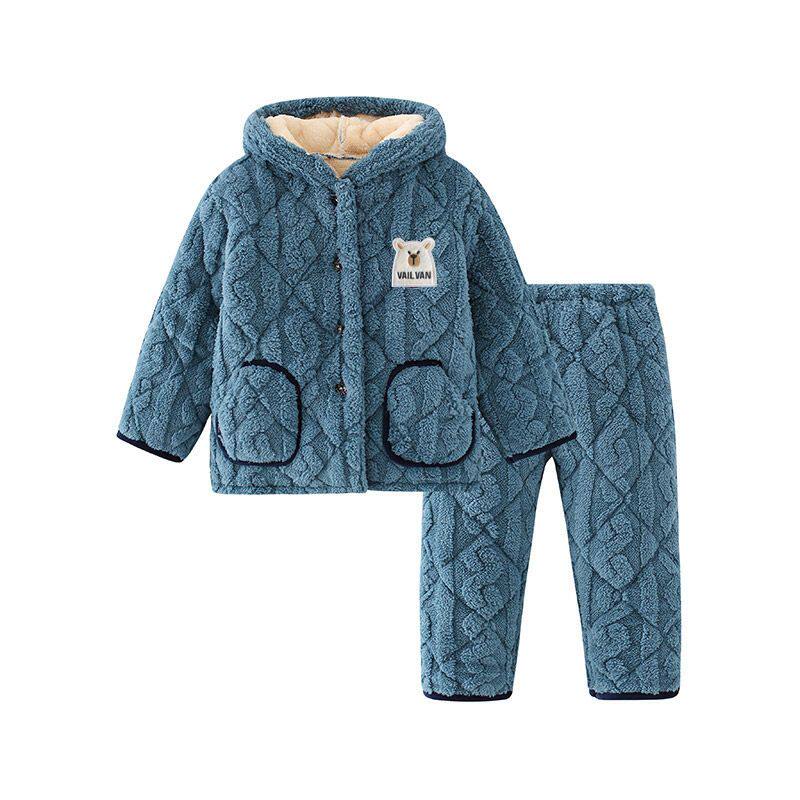 📚 儿童睡衣安可拉红新款冬季加厚珊瑚绒中大童男孩女童三层夹棉套装