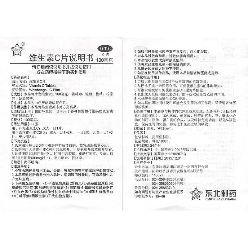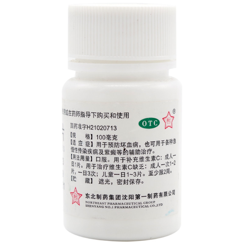 📚 东北制药 维生素C片100mg*100片 预防坏血病急慢性传染病紫癜vc片