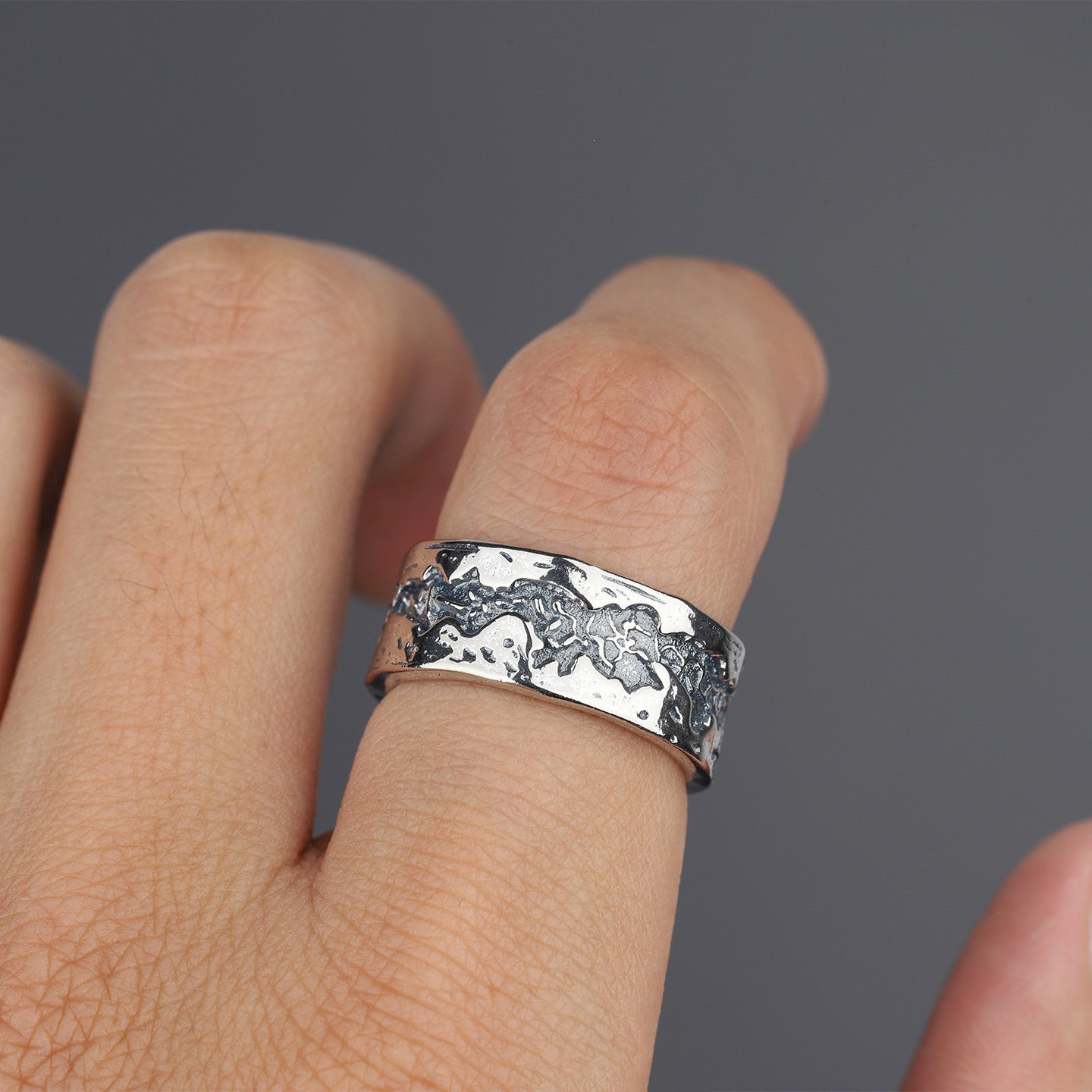📚 复古【裂谷】戒指男士个性做旧小众设计百搭开口指环单身戒