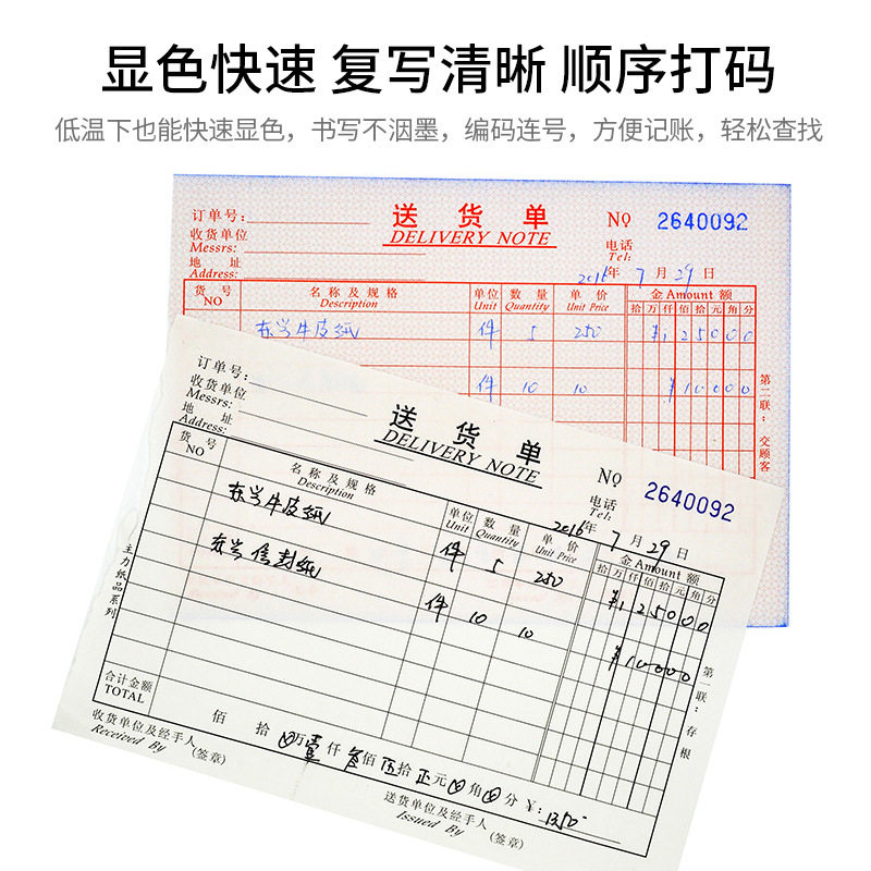 📚 主力送货单两联无碳复写纸多栏自带垫板手写通用二联档口工厂商品