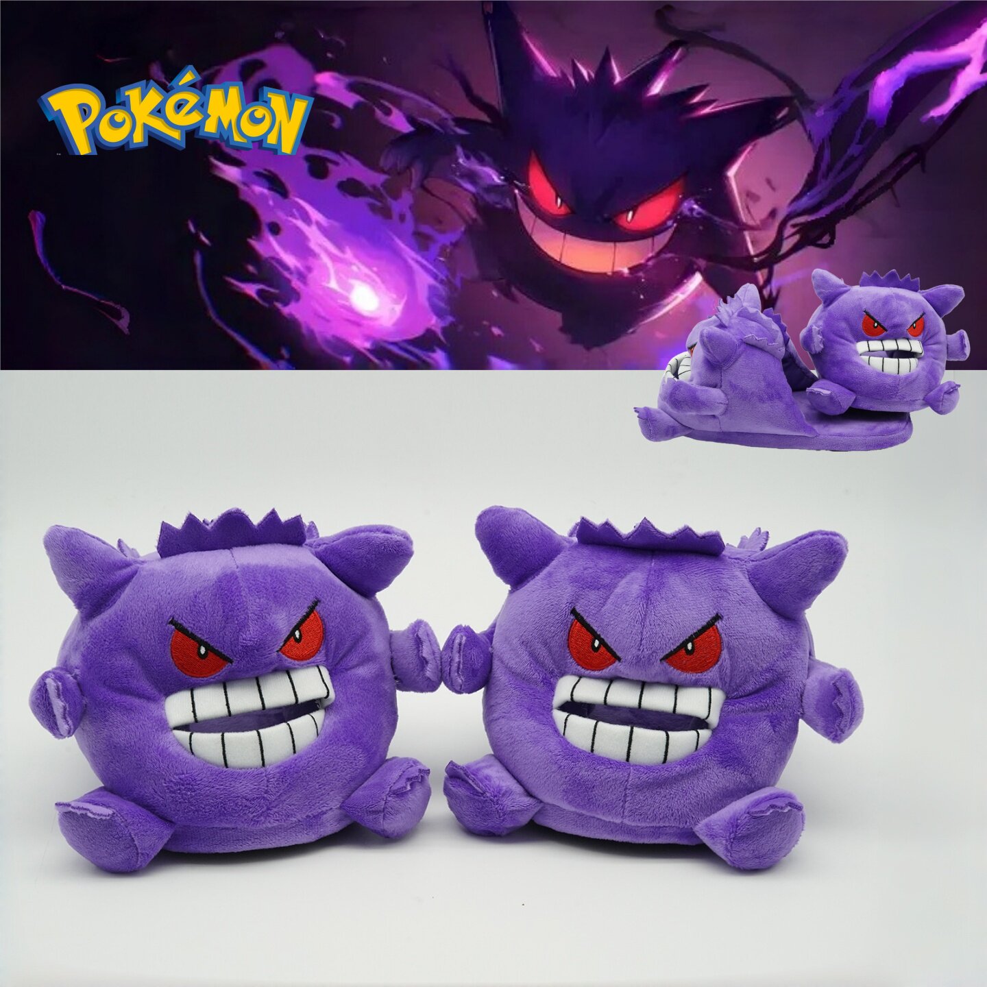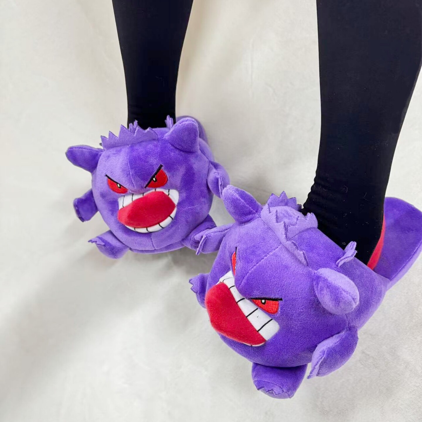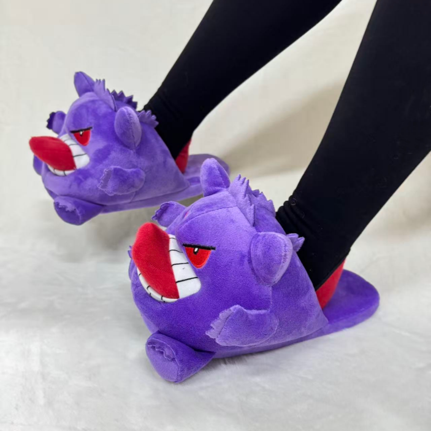 📚 跨境高品质耿鬼拖鞋Gengar毛绒拖鞋搞怪吐舌头软底拖鞋情侣鞋礼物