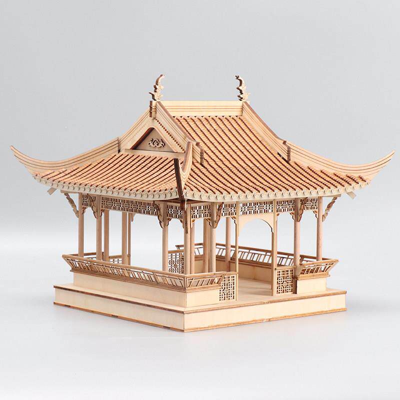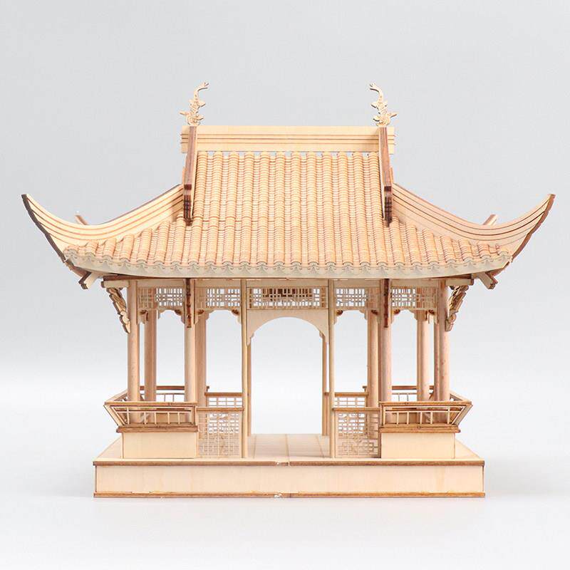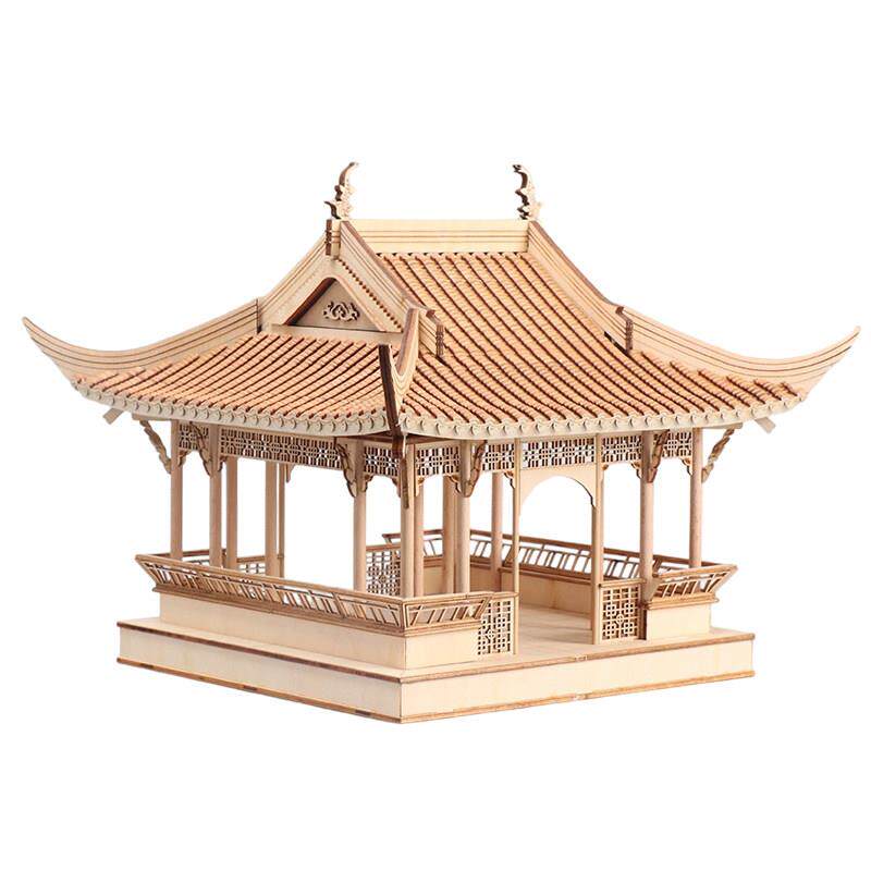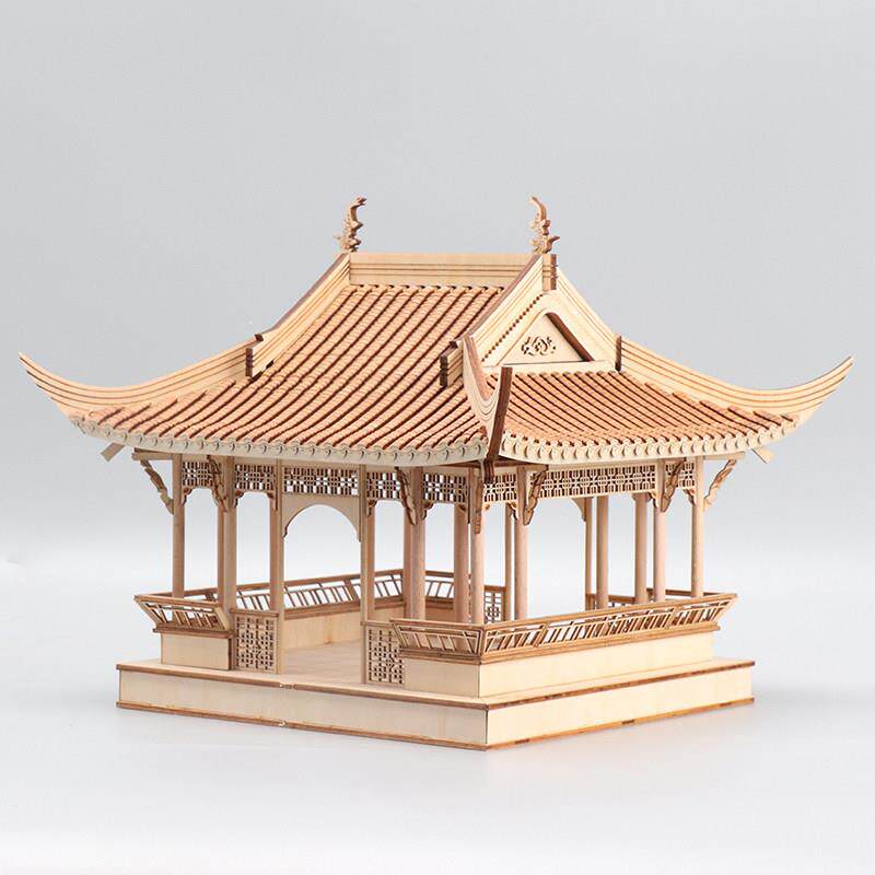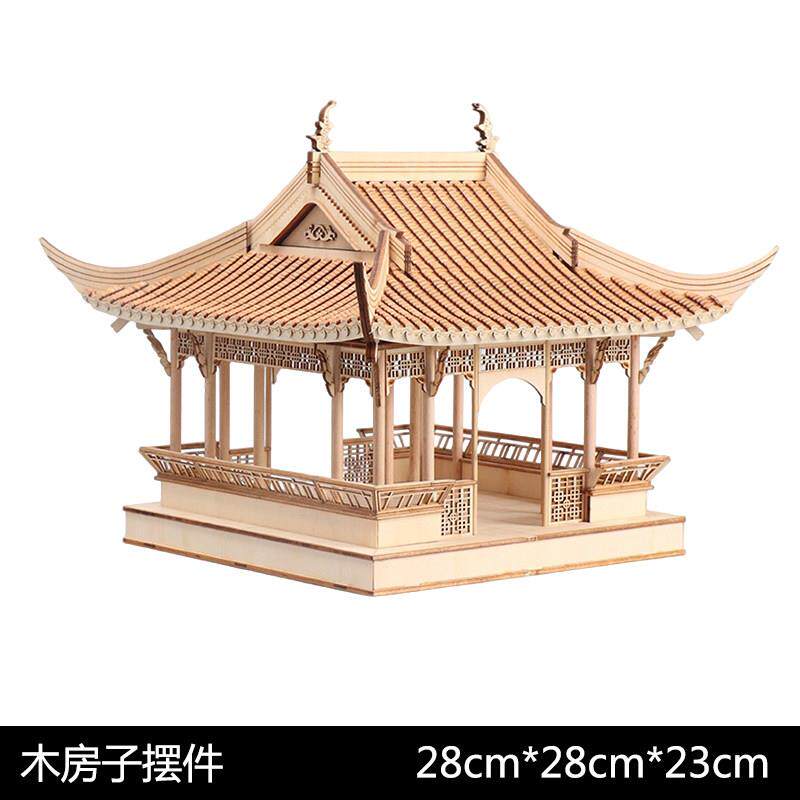 📚 新中式禅意侘寂风院落摆件创意木质凉亭建筑屋檐样板房间软装饰品