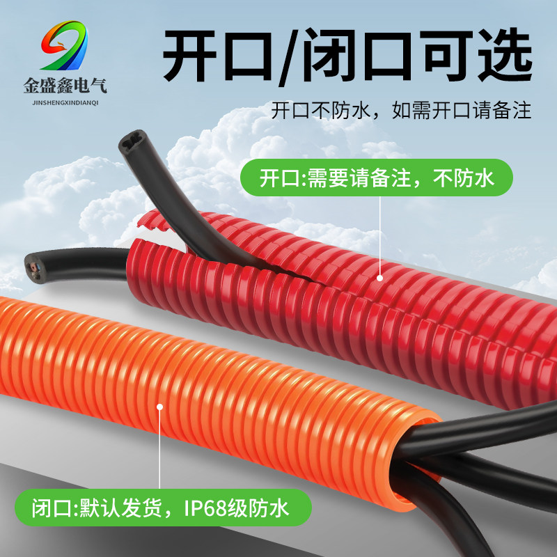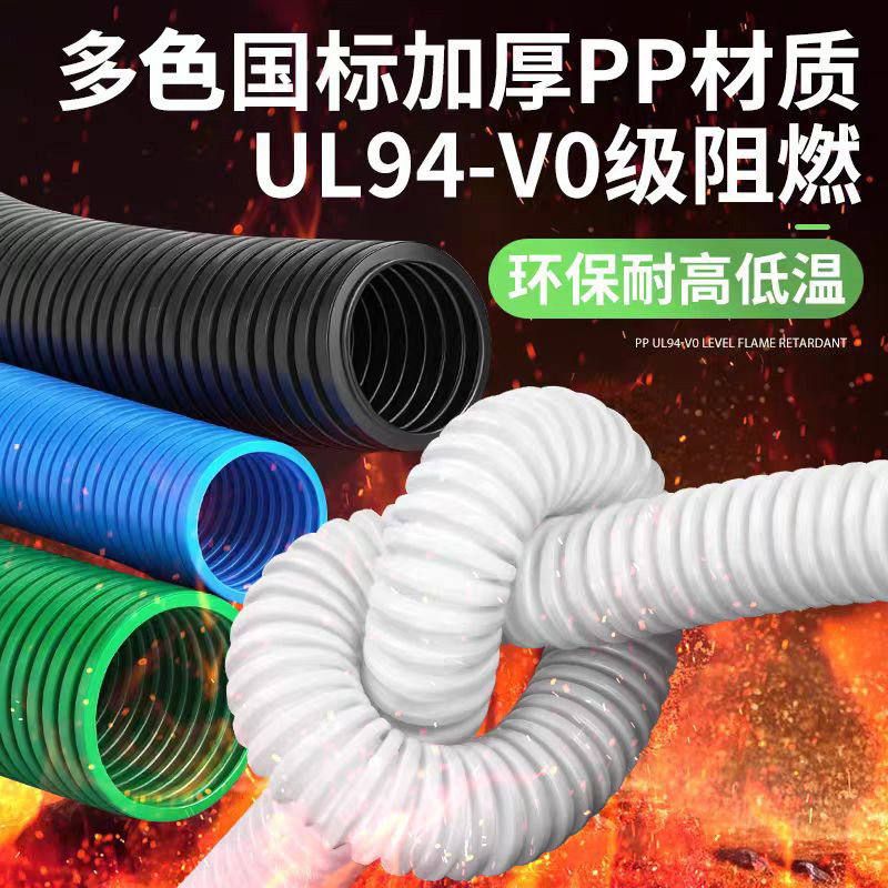 📚 国标加厚PPV0阻燃黑白橙蓝红绿黄多色塑料波纹管电缆穿线软管护套
