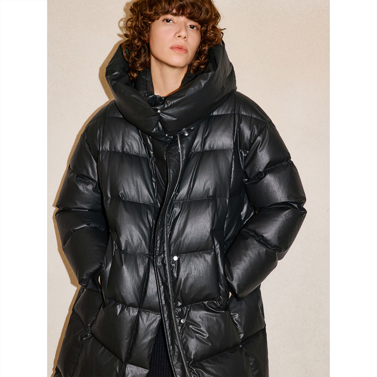 📚 COVERINS高克重鸭绒立领连帽羽绒服女长款2025冬季新款CC35508180