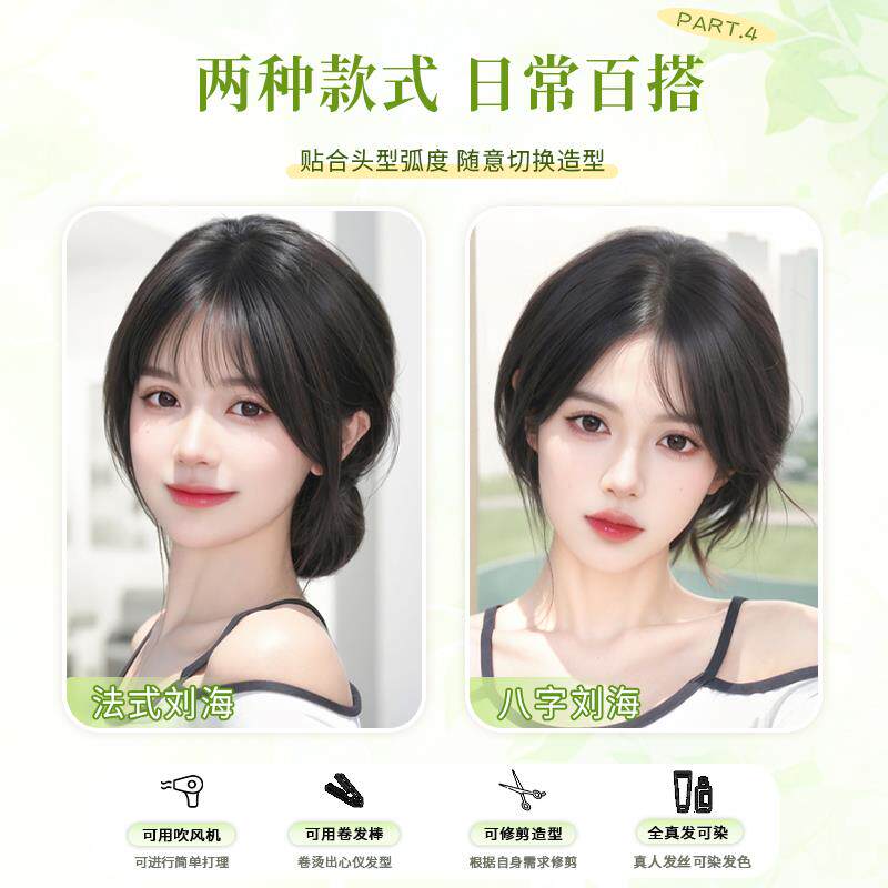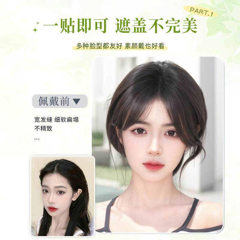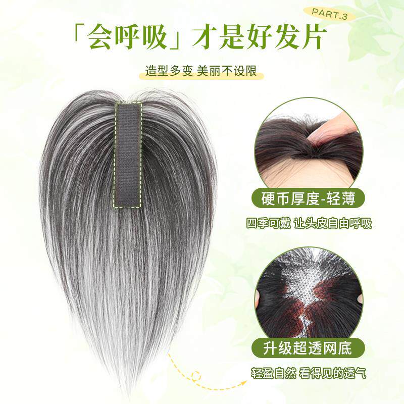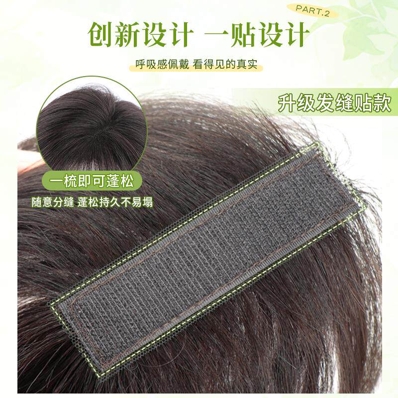 📚 发缝贴刘海假发女片头顶补发增发量全真发遮白发高颅顶蓬松假发片