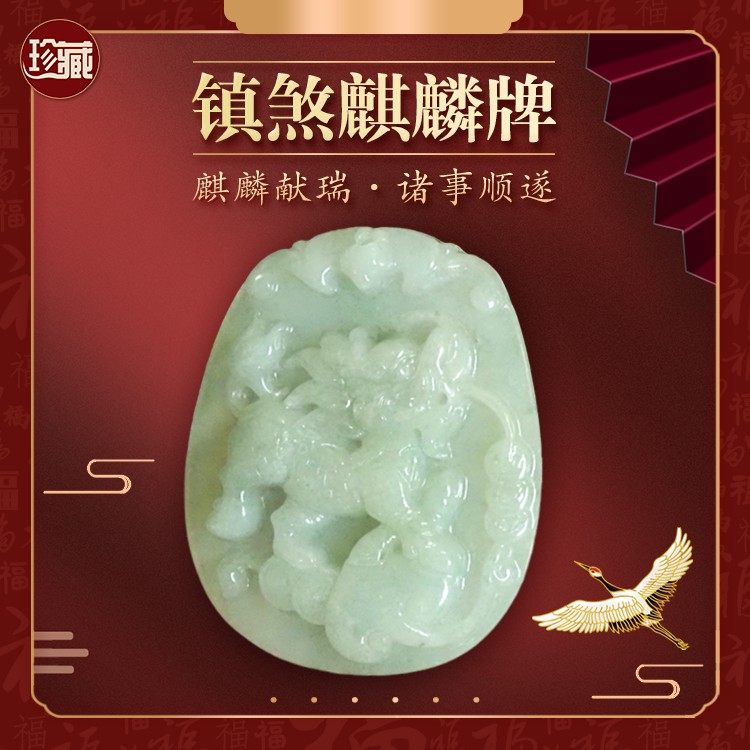 📚 天然正品翡翠麒麟玉牌 缅甸A货玉石麒麟挂饰诸事顺遂男女玉佩