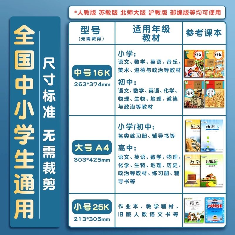 👀使用体验方面,这款保护套真的是太贴心了!无论是小学生课本还是其他书籍,都能很好地保护它们不受损伤。而且,它的设计简洁大方,适合各种场合使用。无论是学校还是家里,都能轻松找到它。