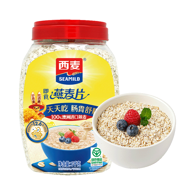 📚 西麦纯燕麦片1000g*1桶营养早餐即食冲饮免煮代餐饱腹全谷物麦片