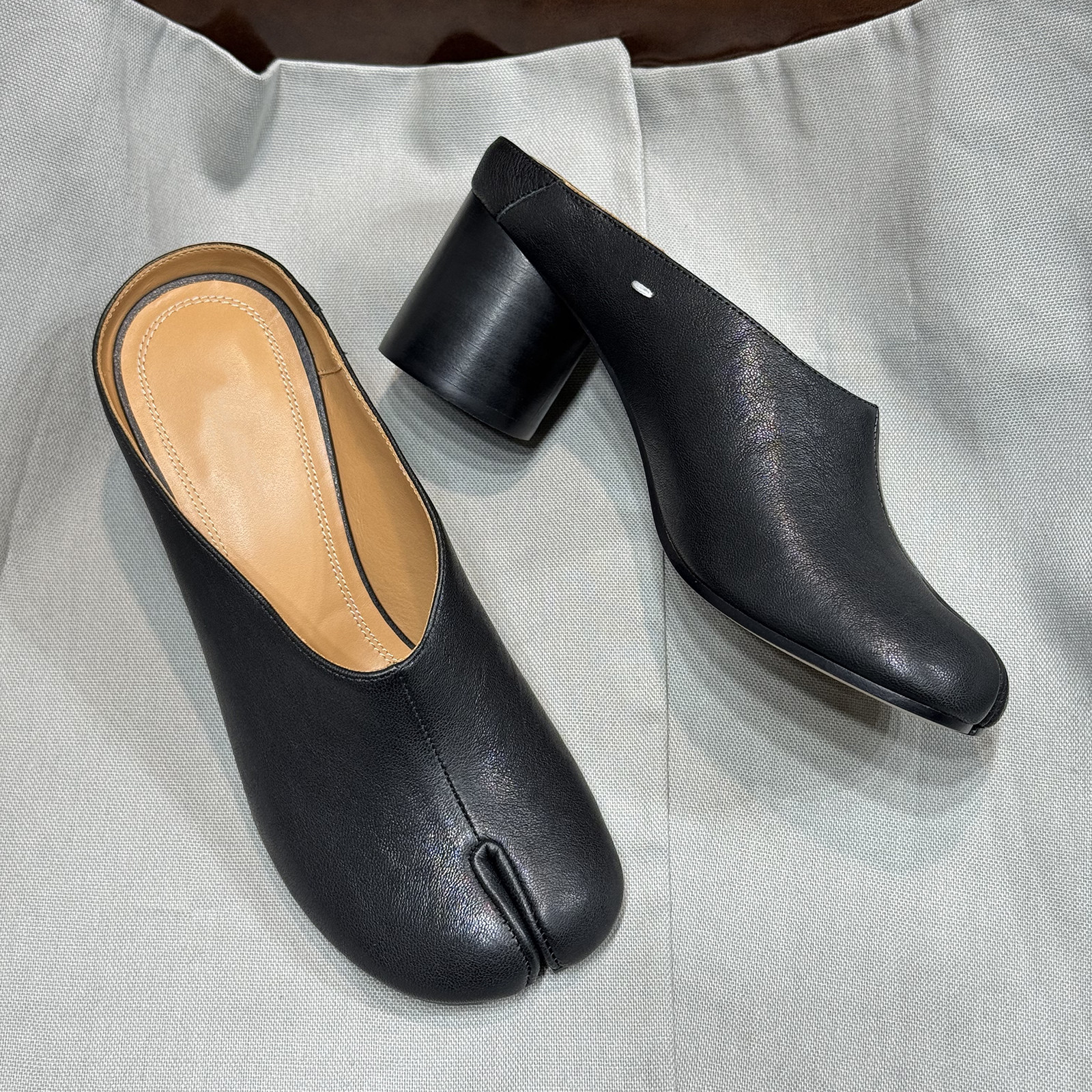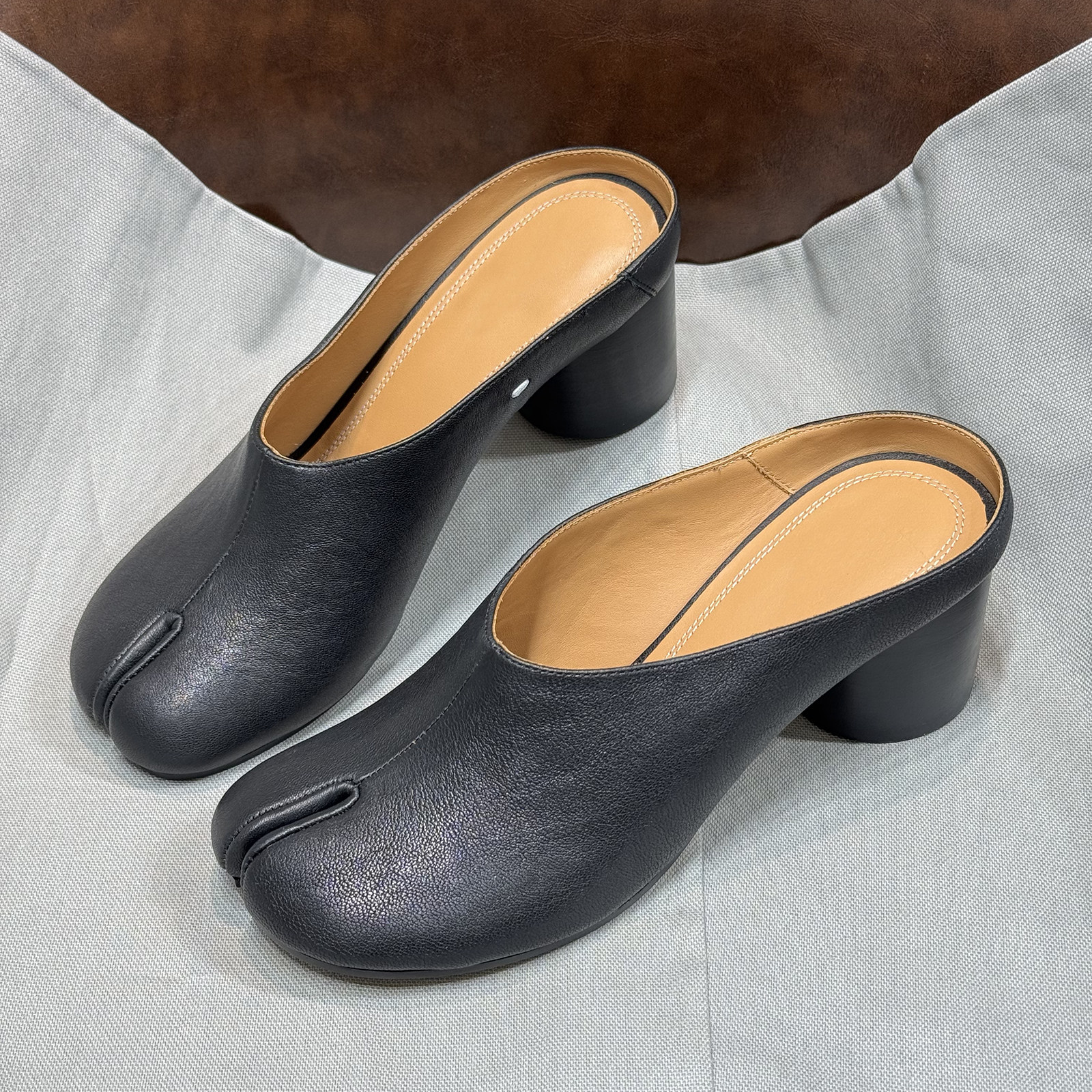 📚 2026新款Tabi分趾粗跟穆勒鞋复古包头半拖鞋女高跟真皮凉拖鞋外穿