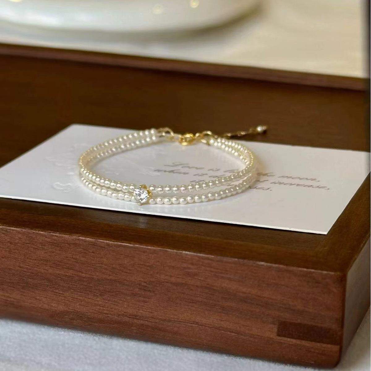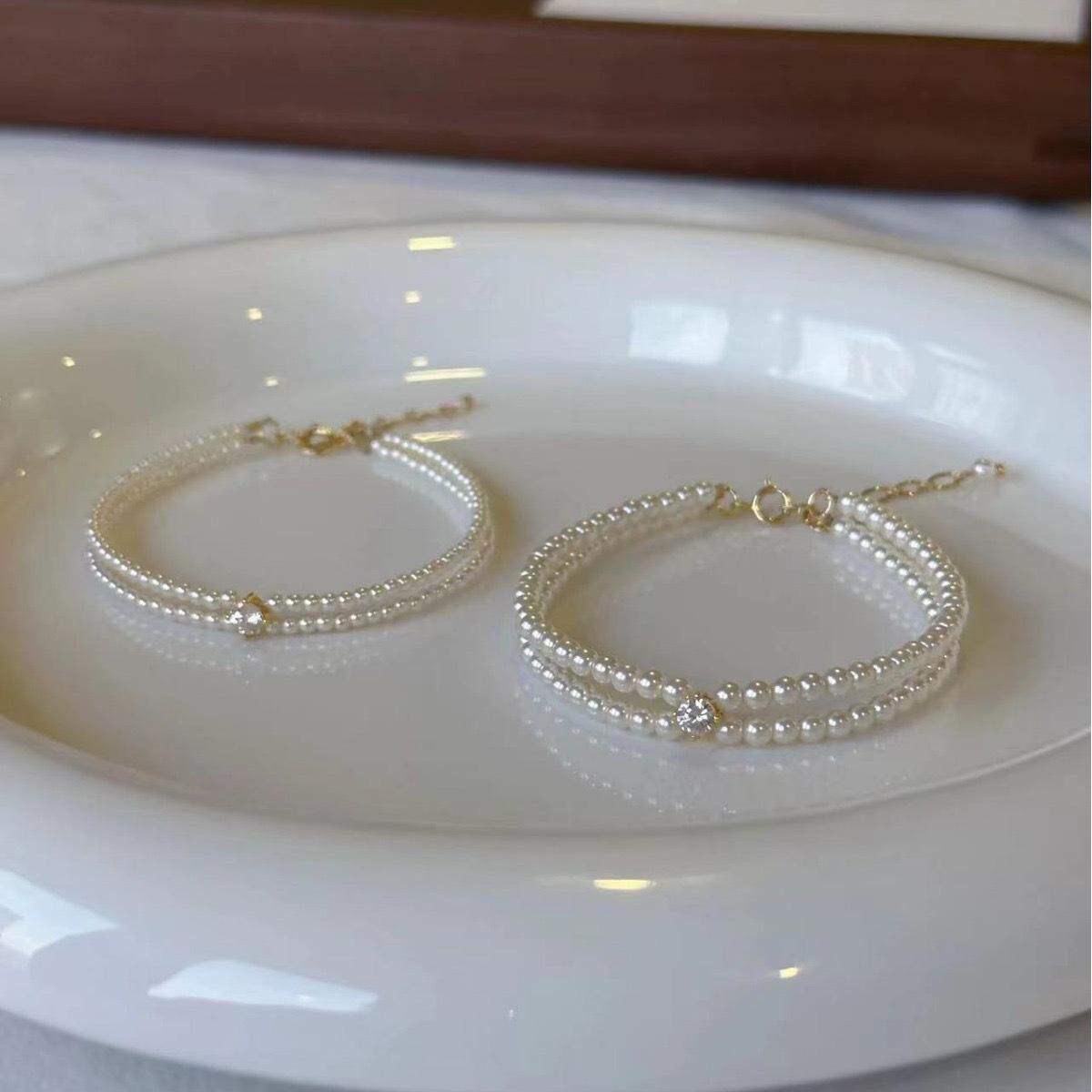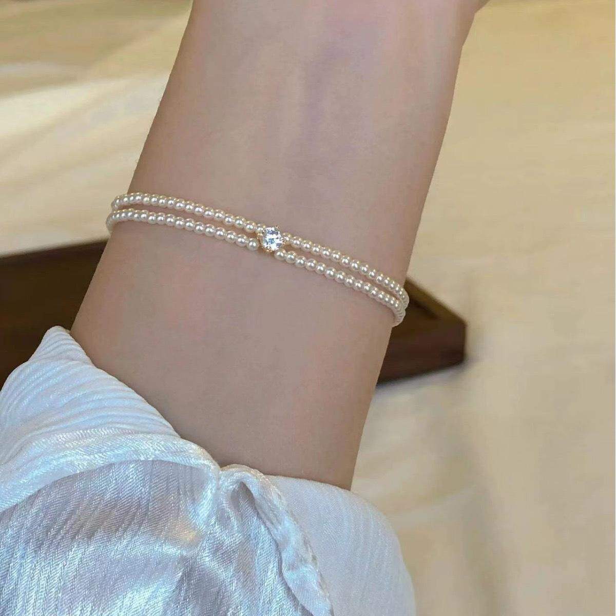 📚 双层珍珠手链女小米珠高级感百搭轻奢气质叠戴手串手饰品轻奢百搭