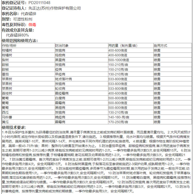 📚 山德生先正达80%代森锰锌葡萄黄瓜霜霉炭疽白腐早晚疫病杀菌剂1kg