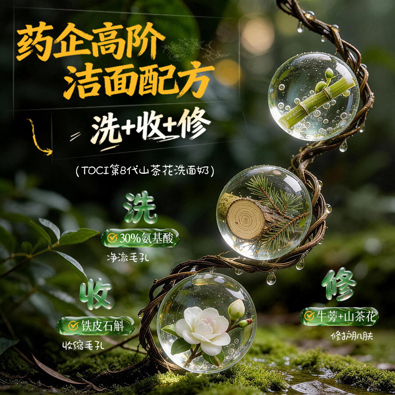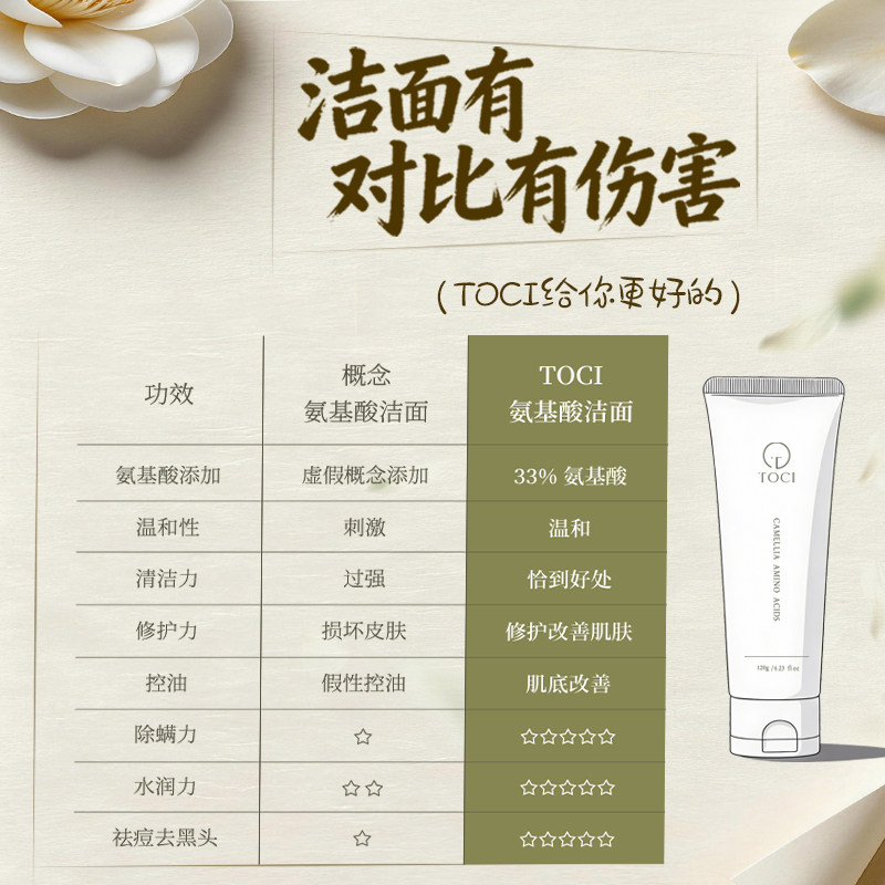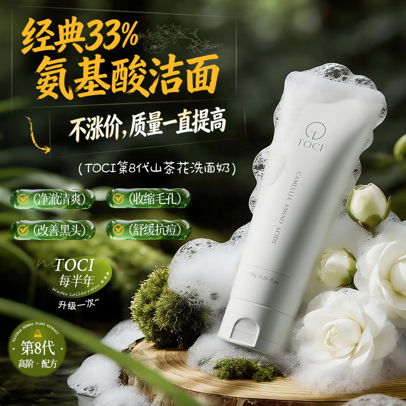 📚 北大研发×TOCI山茶花氨基酸洗面奶控油清洁毛孔收缩去黑头祛痘