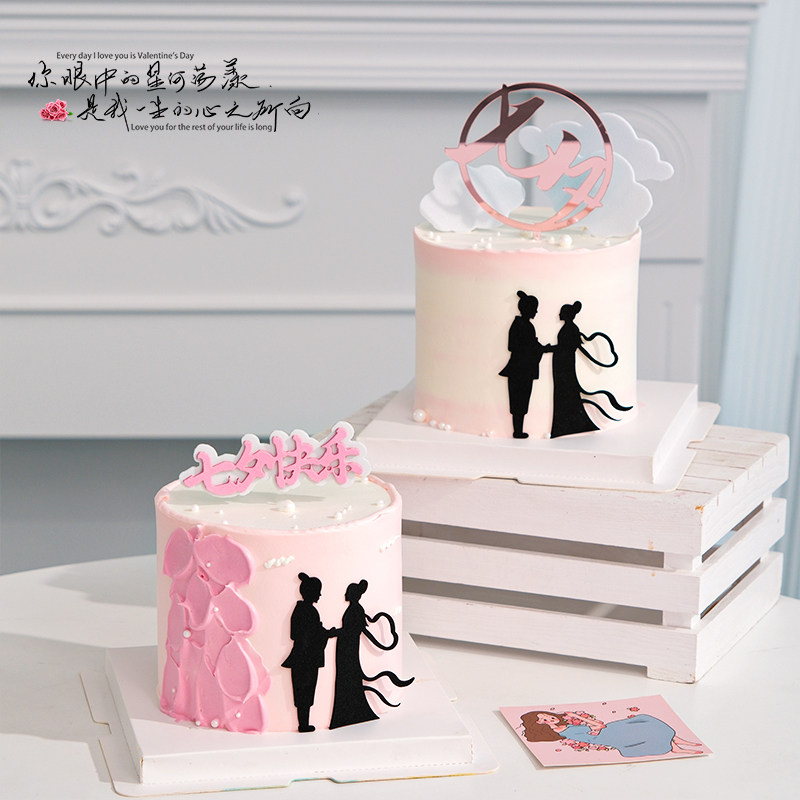 📚 七夕情人节网红蛋糕装饰摆件中式牛郎织女背影插件情侣节日插牌