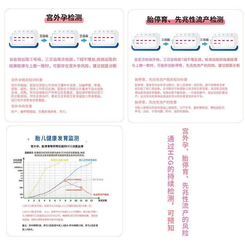 这款产品让我第一次使用时就被它小巧精致的外观所吸引,使用起来也非常方便。它的半定量设计非常贴心,能快速准确地帮助我判断是否怀孕。而且,它还可以同时检测hCG(人绒毛膜促性腺激素)和宫外孕等情况,真的是一款全能型的产品。