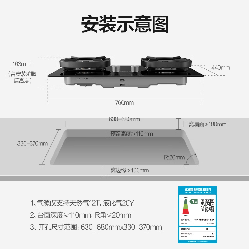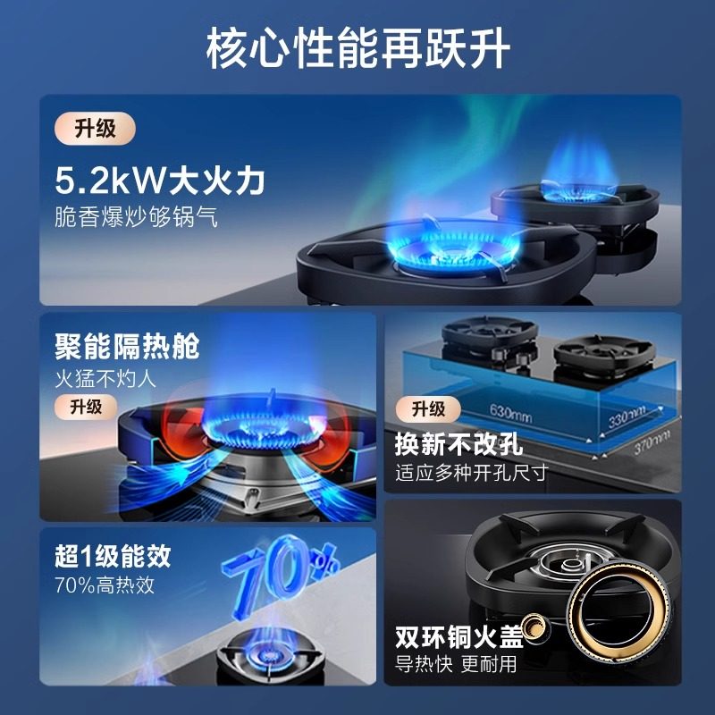 📚 万和嵌入式燃气灶煤气灶炉灶天然气液化气5.2KW猛火台式双G6国补