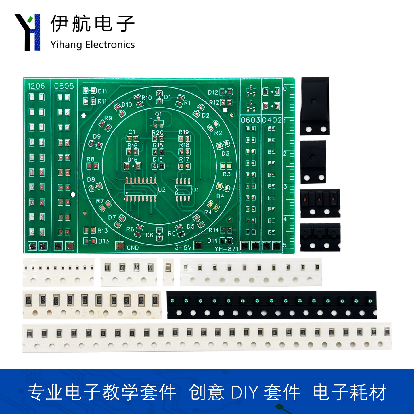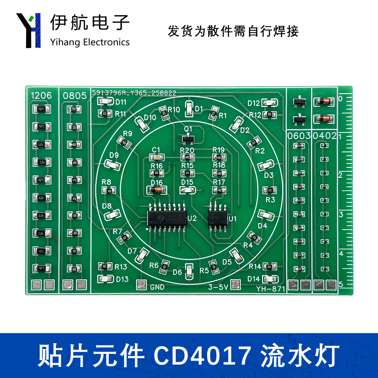 📚 贴片元件焊接练习板CD4017流水灯套件DIY焊接技能电子制作YH-871