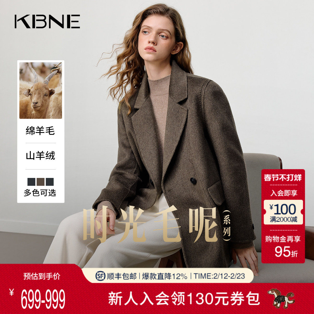 📚 KBNE山羊绒高智感毛呢西装外套女2025冬季新款双面呢短款呢子大衣