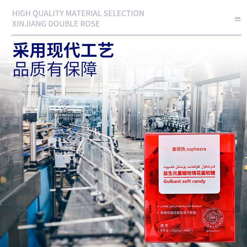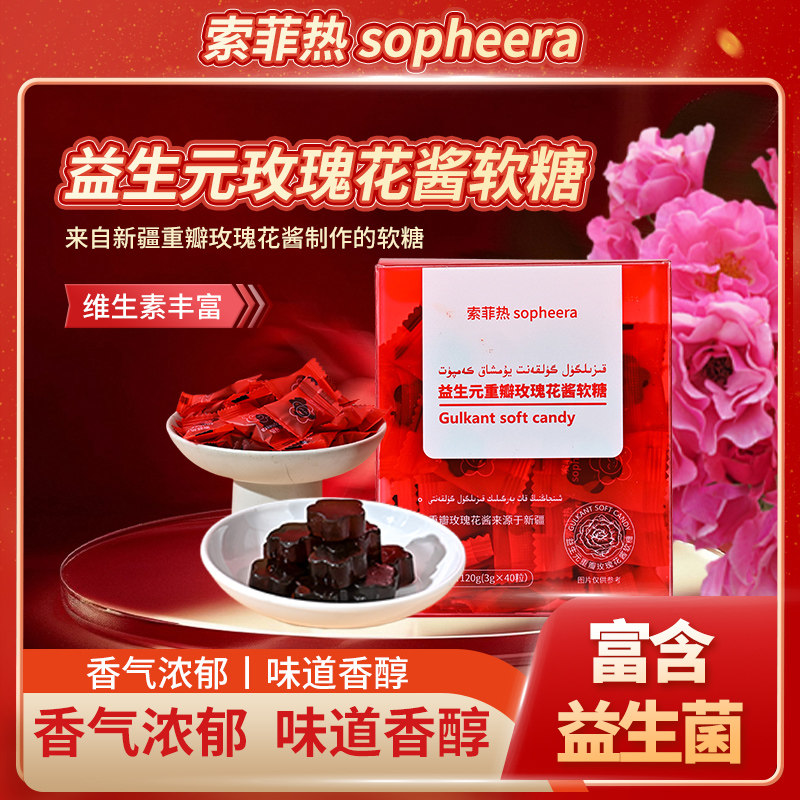 📚 索菲热新疆益生元重瓣玫瑰花酱软糖果酸甜网红爆款水果儿童零食qq