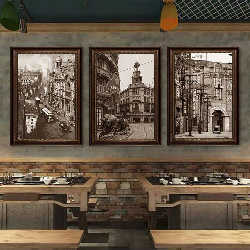 📚 民国怀旧风挂画上海和平饭店背景墙装饰画酒店餐厅轻奢高级感壁画