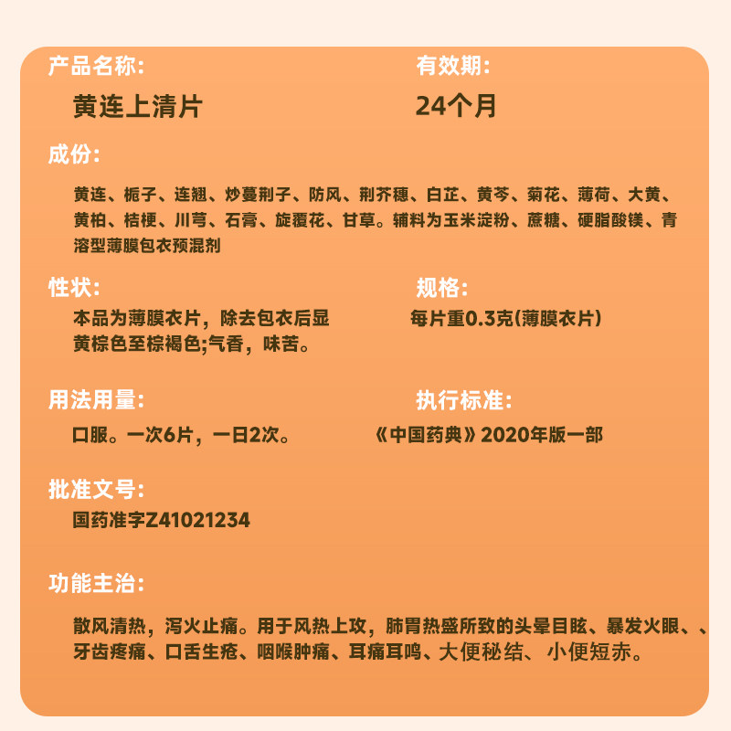 📚 修正黄连上清片30片正品官方旗舰泻火止痛咽喉降火药头晕目眩消炎