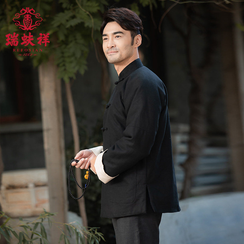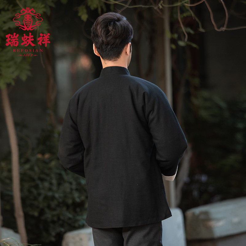 📚 瑞蚨祥中国风唐装男秋冬季棉衣复古盘扣中式涤麻男装立领棉服外套