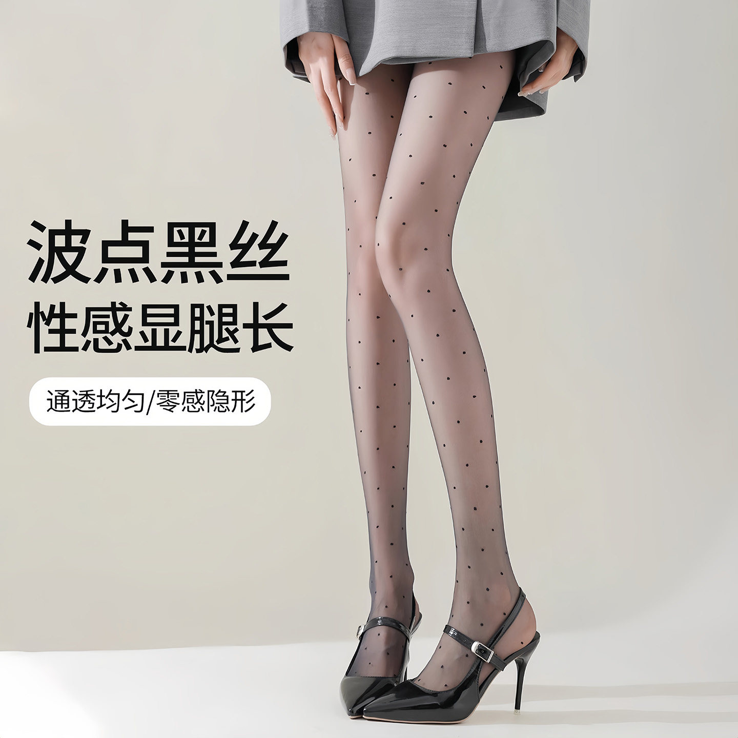 📚 黑色波点连裤袜女针织小腿堆堆袜套高腰显瘦打底袜美腿袜光腿神器