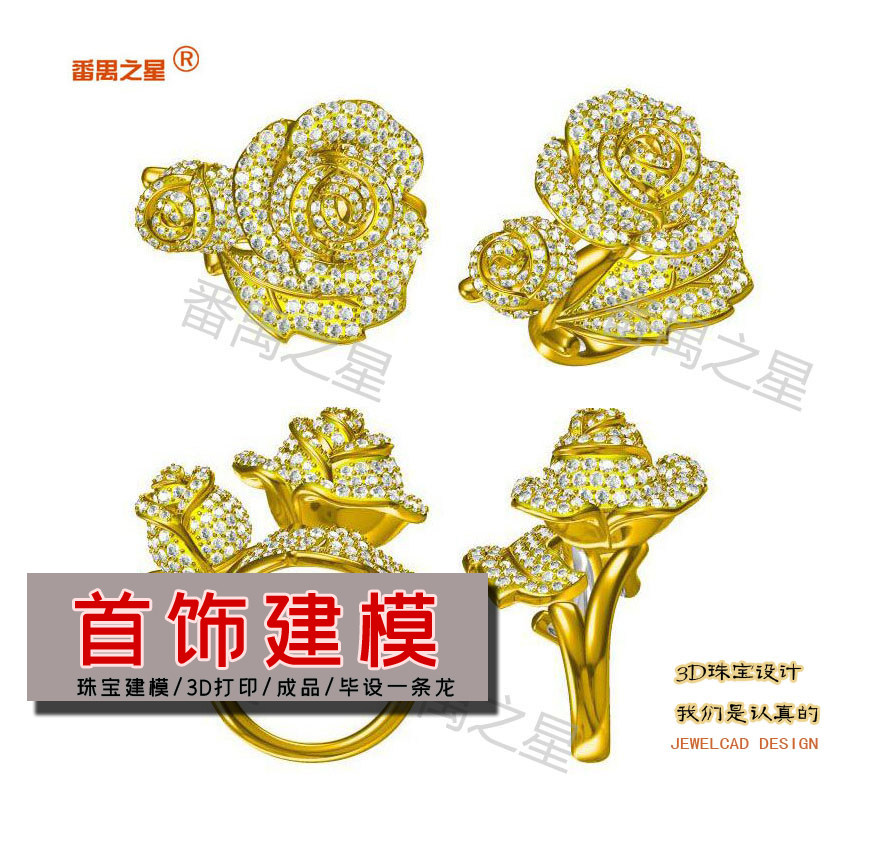 📚 3D打印铸造紫蜡红蜡珠宝首饰CAD代画JEWElCAD珠宝设计成品加定制