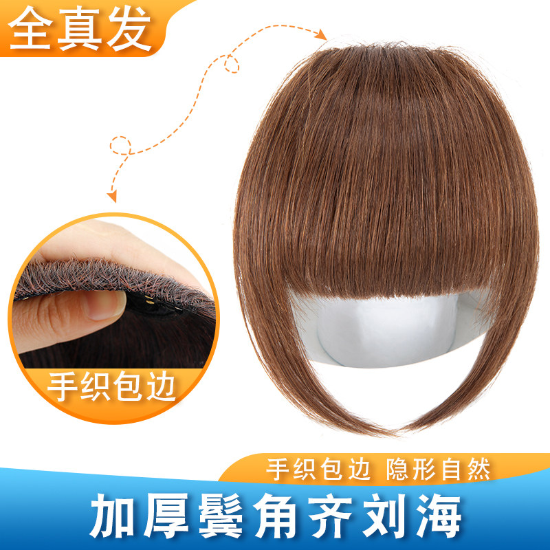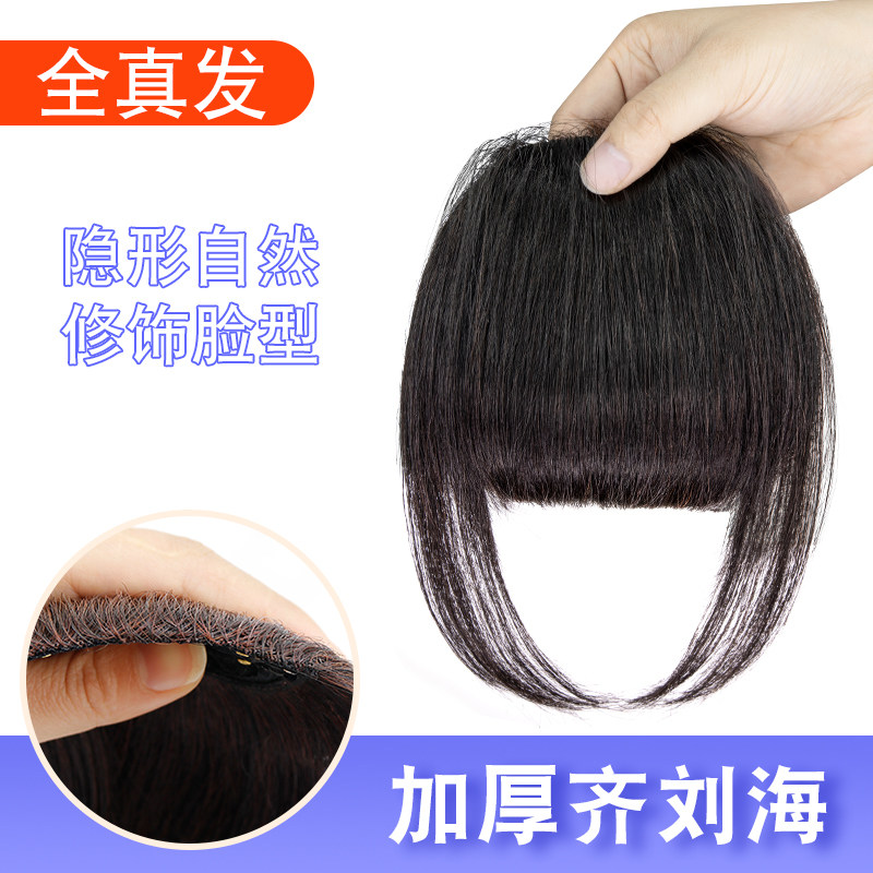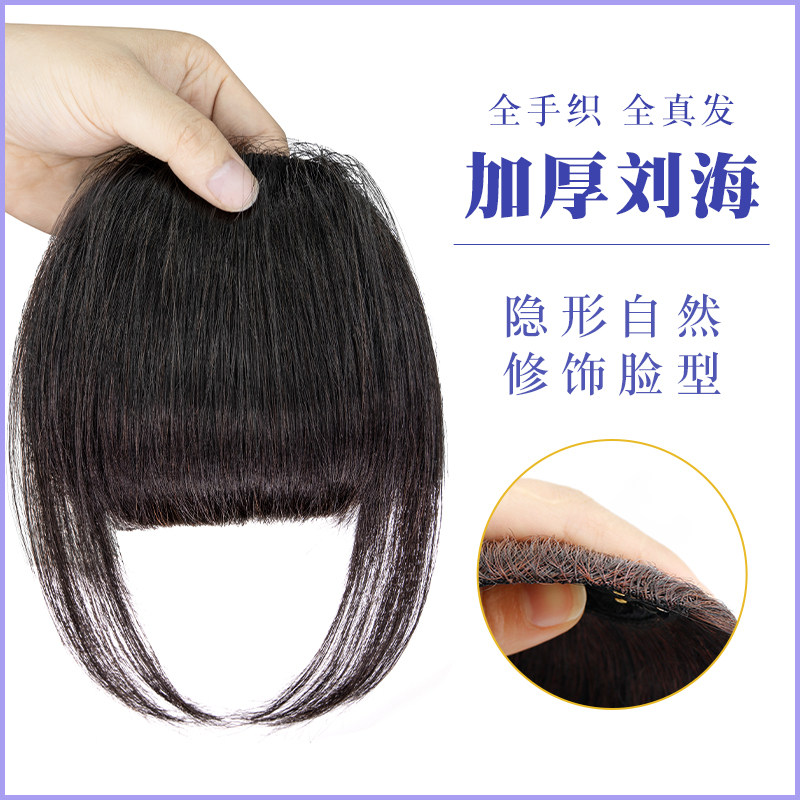 📚 厚刘海假发女真人发头帘假刘海自然前额补发真发发箍齐刘海假发片