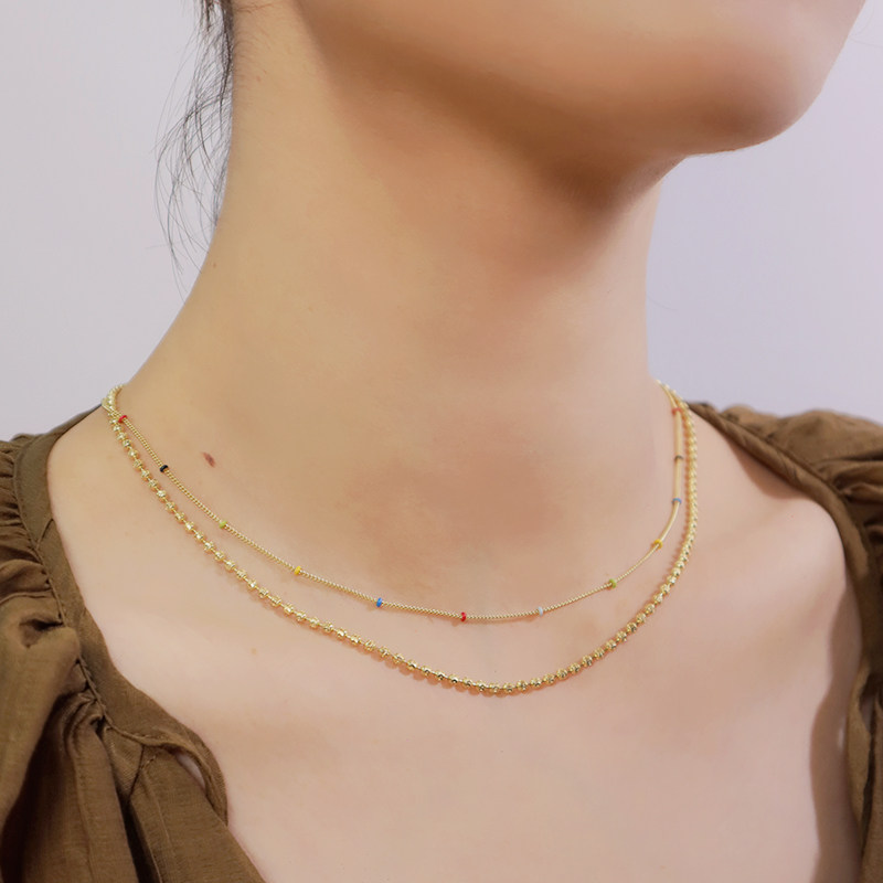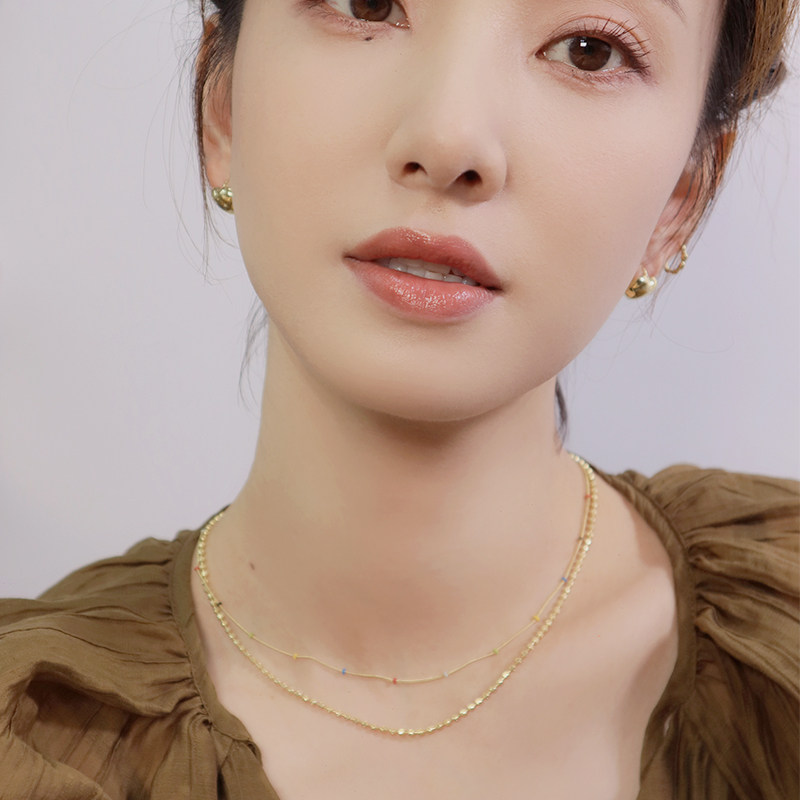 📚 STUNNING MOMO【高定款】小彩珠细链叠戴项链百搭925银防敏珠珠链