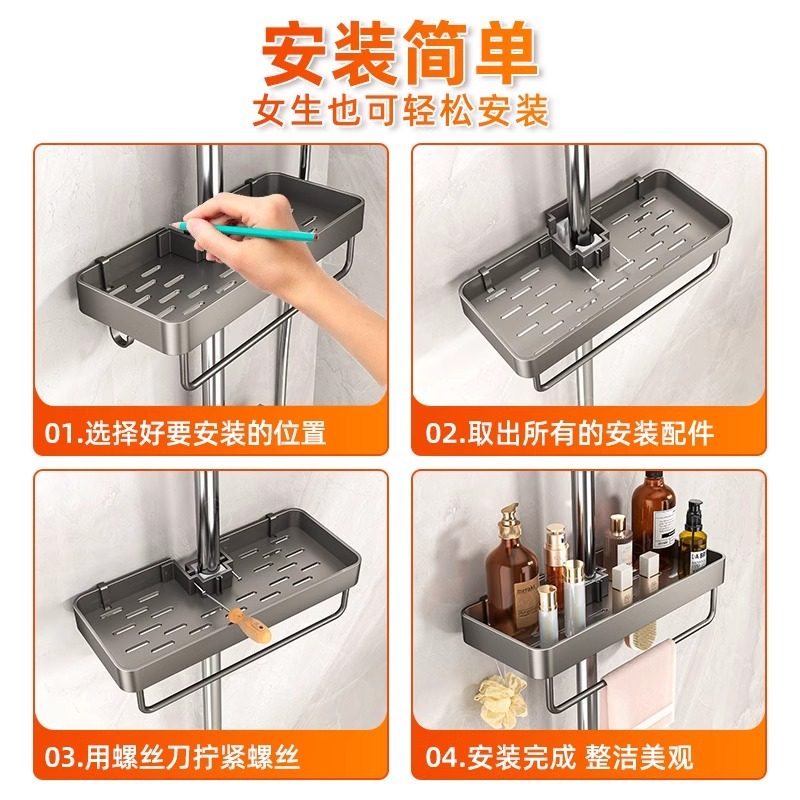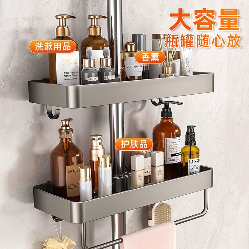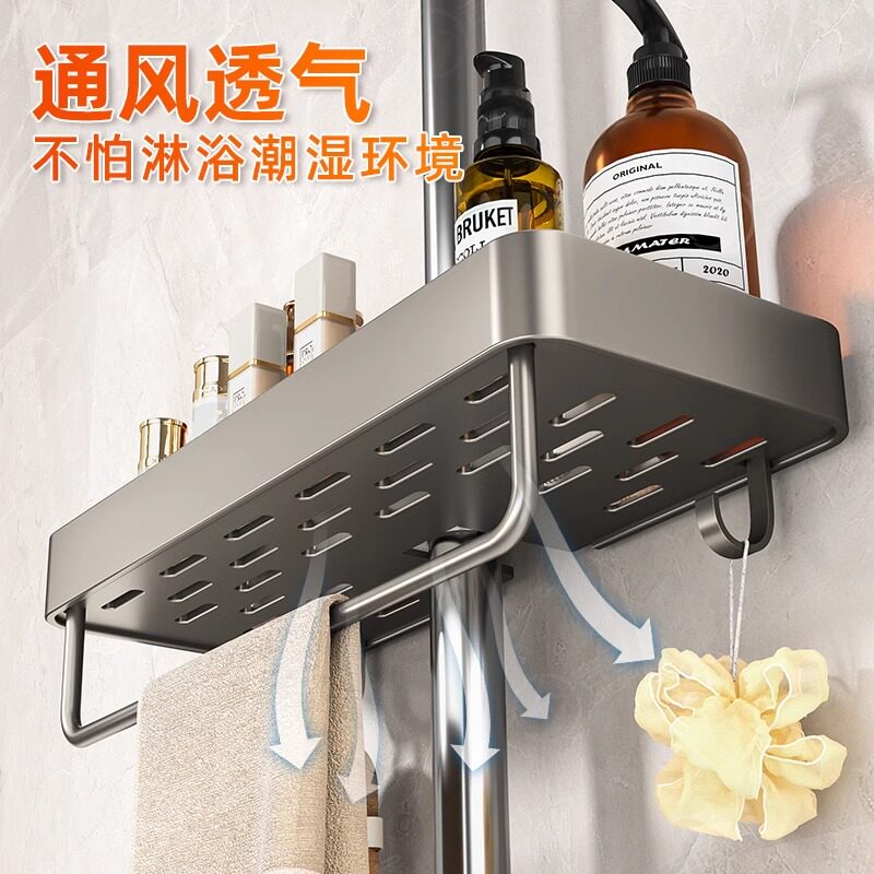 📚 免打孔花洒置物架卫生间淋浴卫生间架子支架浴室花洒杆沐浴露托盘